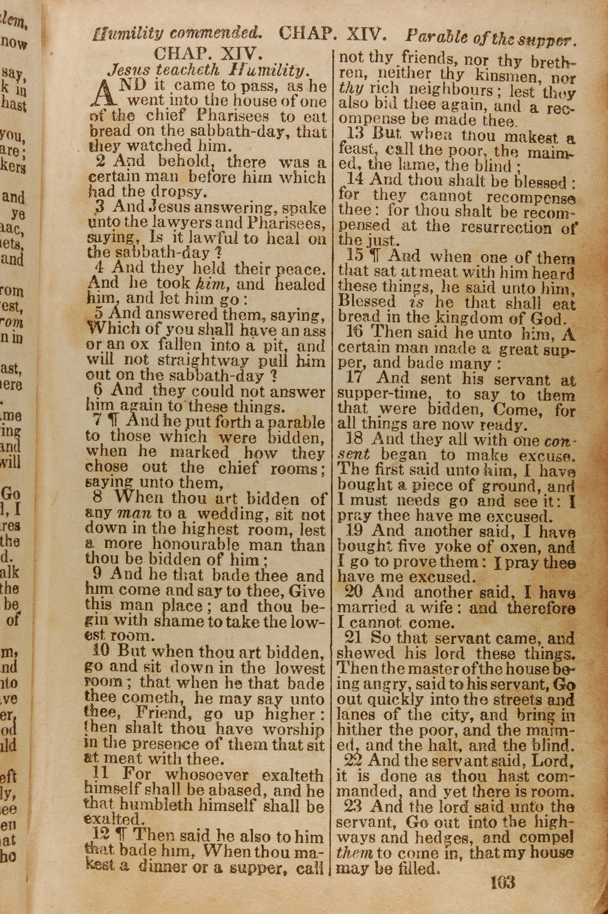 1843年The New Testament 路加福音 14 章 1 節到 14 章 23 節