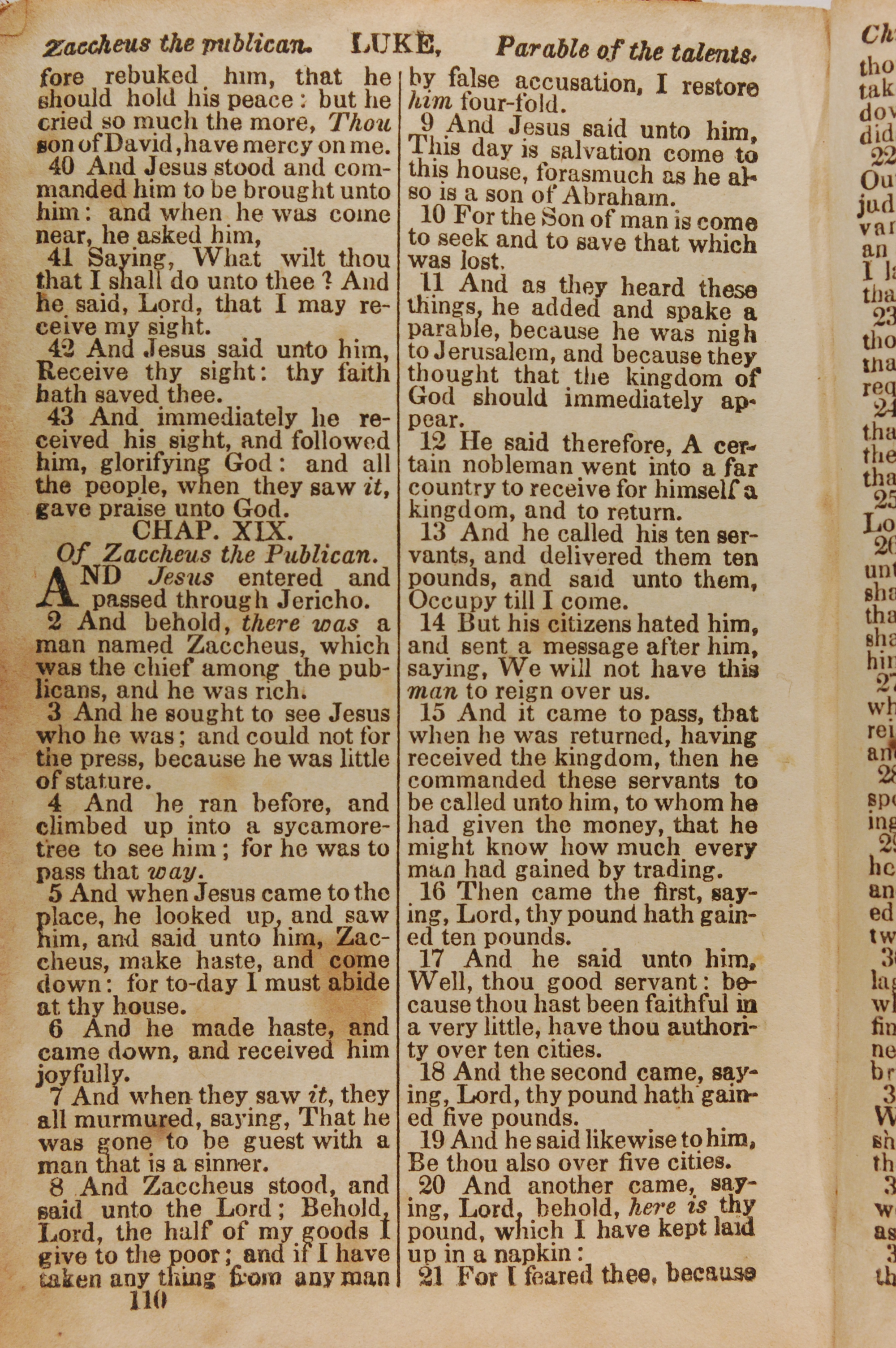 1843年The New Testament 路加福音 18 章 40 節到 19 章 21 節