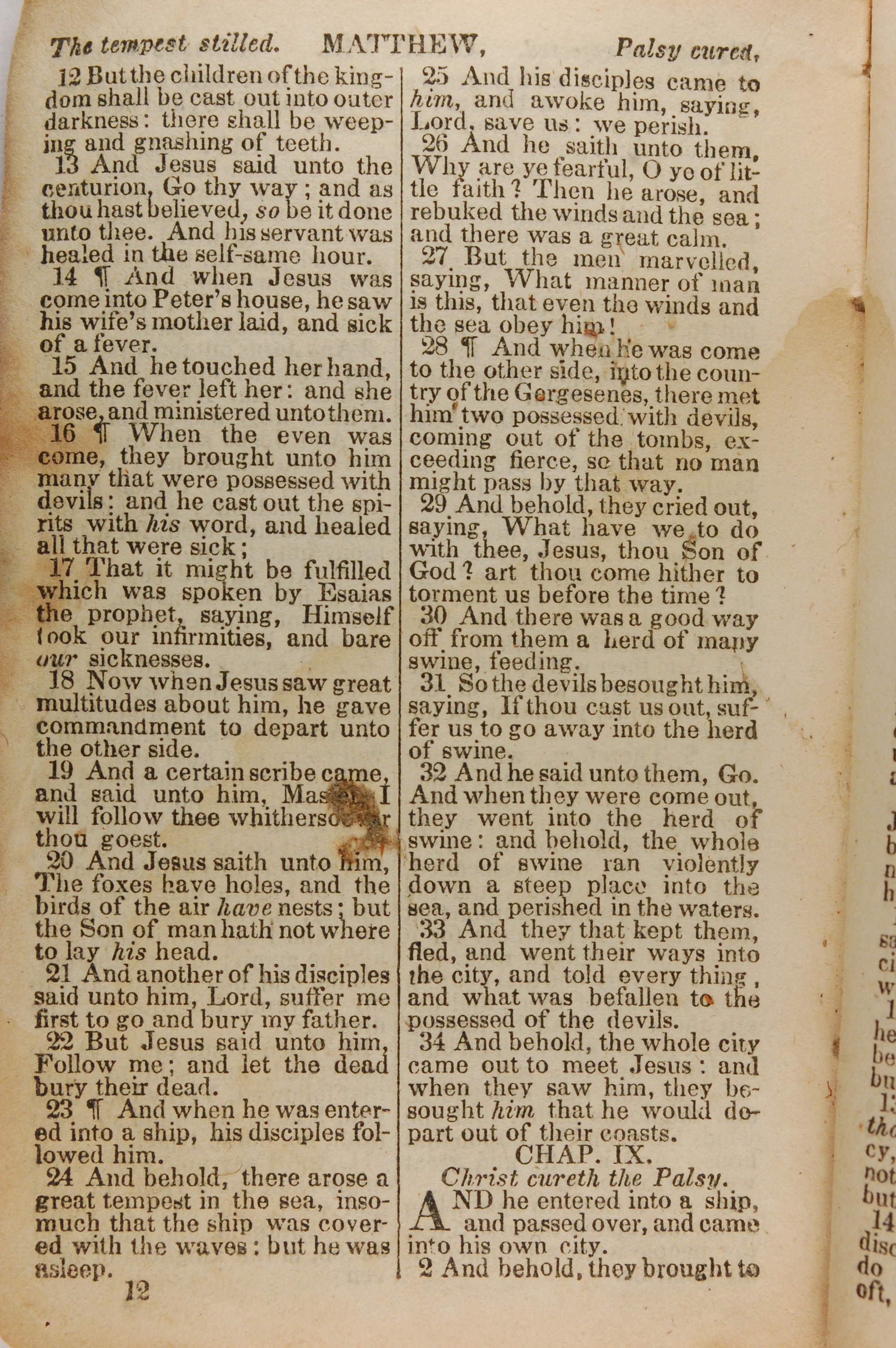 1843年The New Testament 馬太福音 8 章 12 節到 9 章 2 節