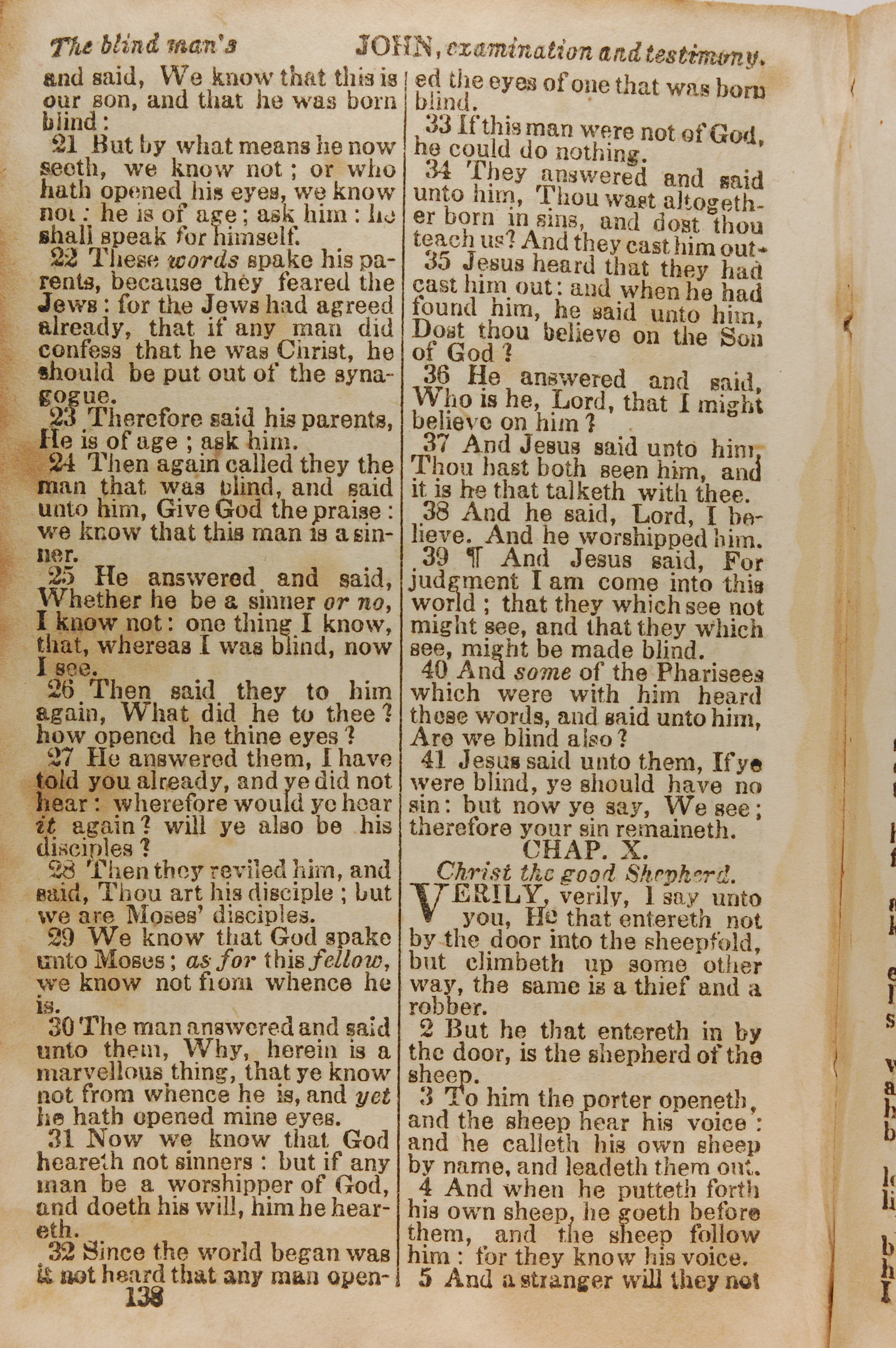 1843年The New Testament 約翰福音 9 章 21 節到 10 章 5 節