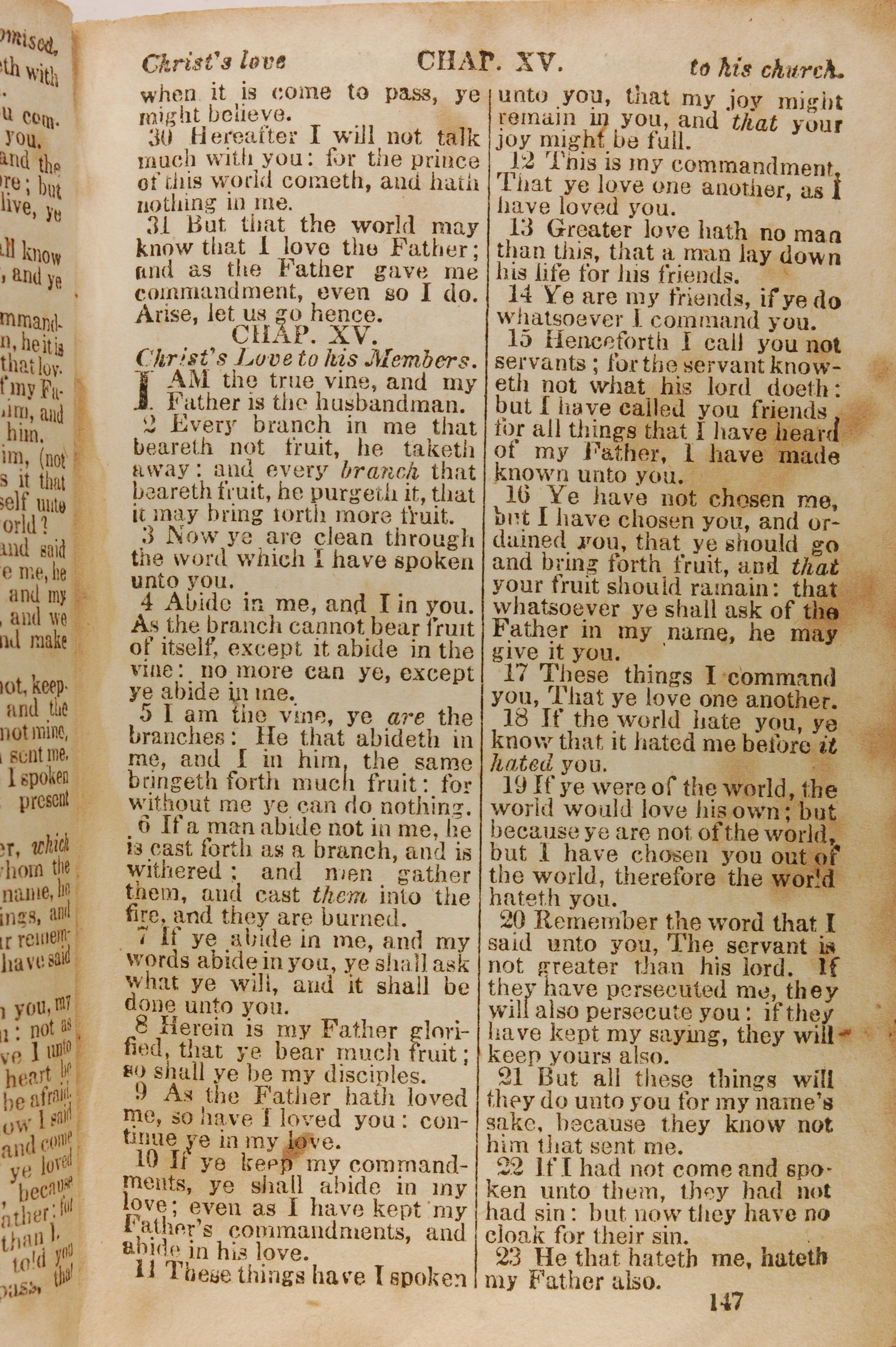 1843年The New Testament 約翰福音 14 章 30 節到 15 章 23 節