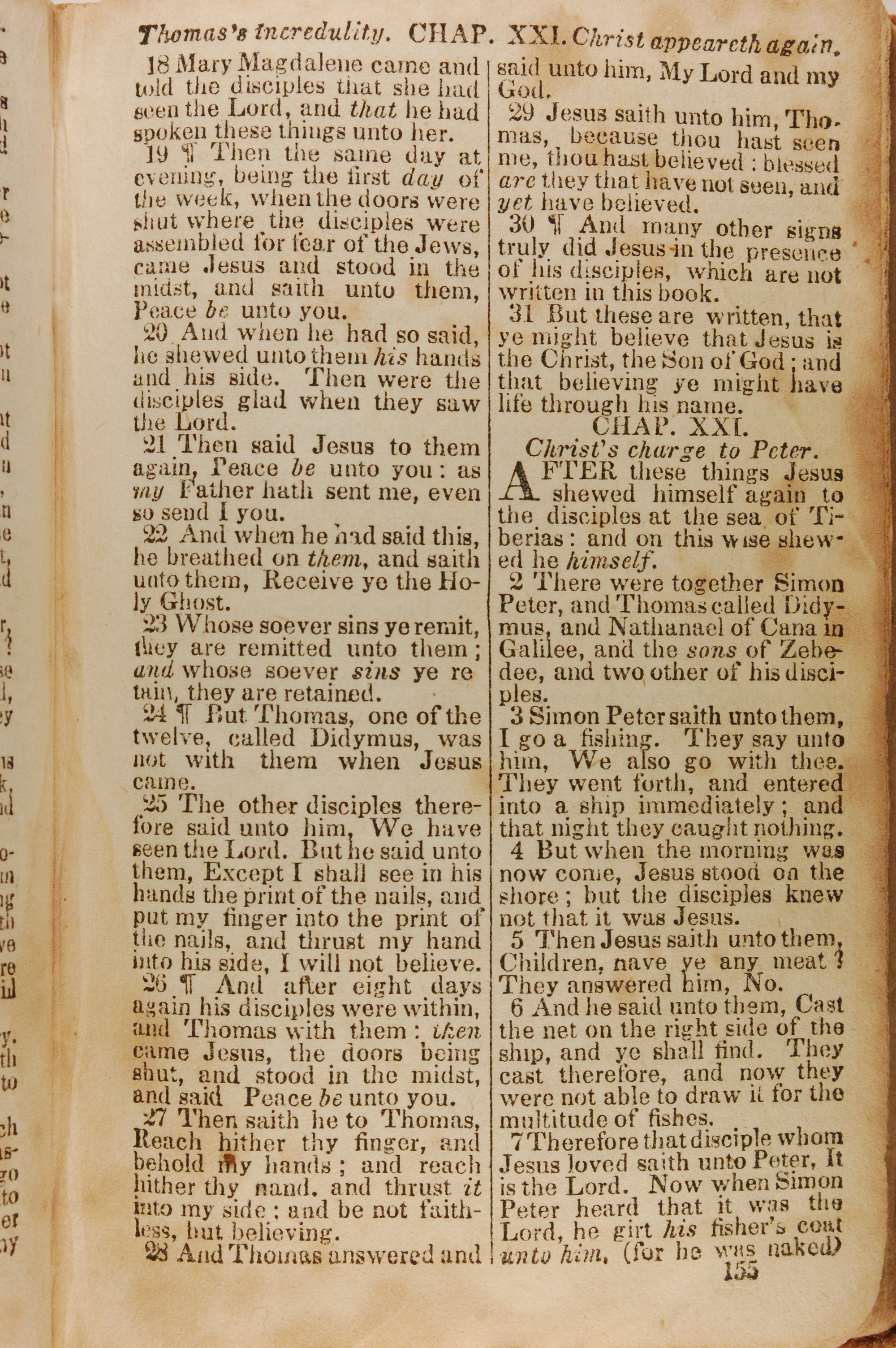 1843年The New Testament 約翰福音 20 章 18 節到 21 章 7 節