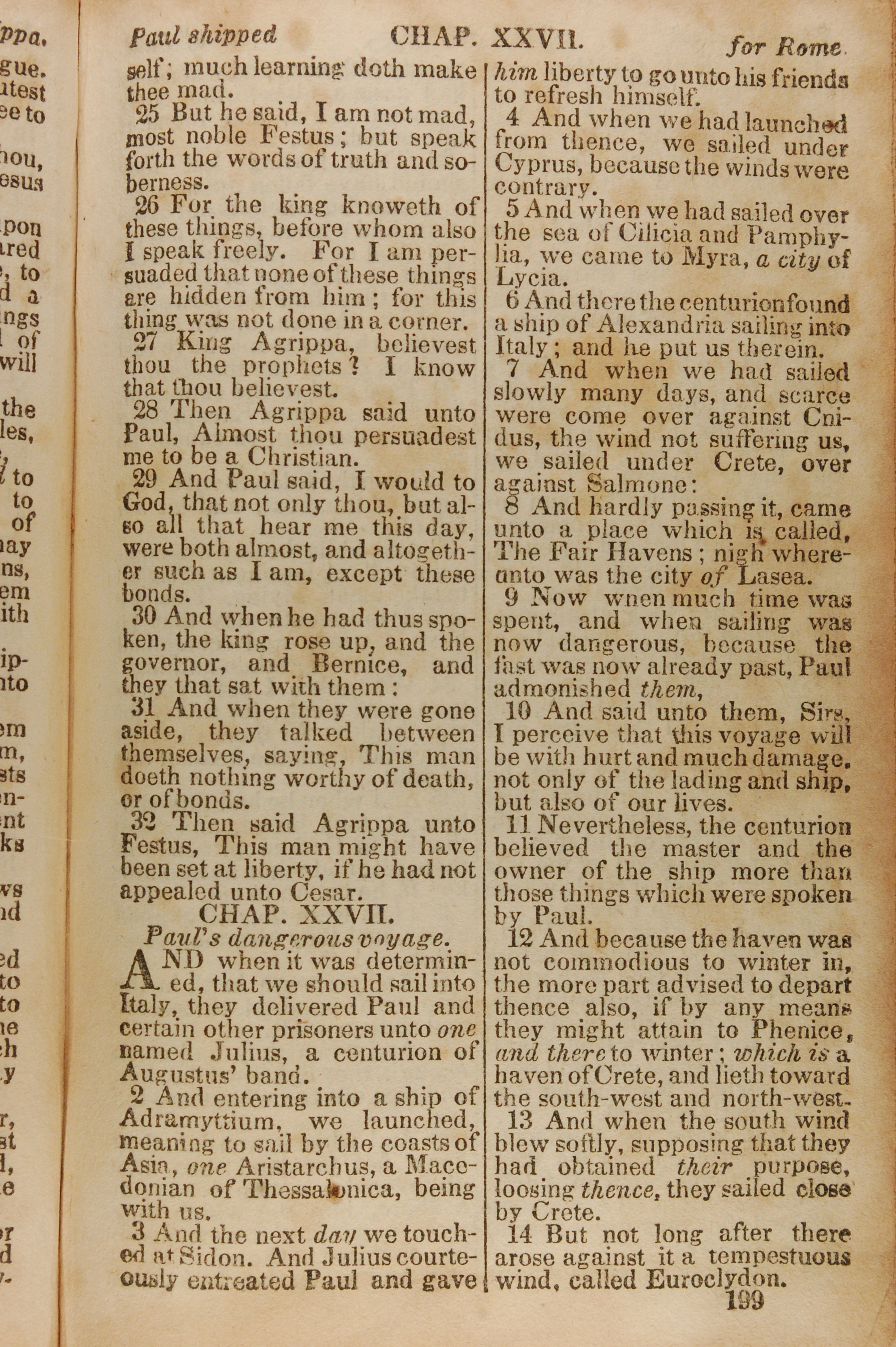 1843年The New Testament 使徒行傳 26 章 25 節到 27 章 14 節