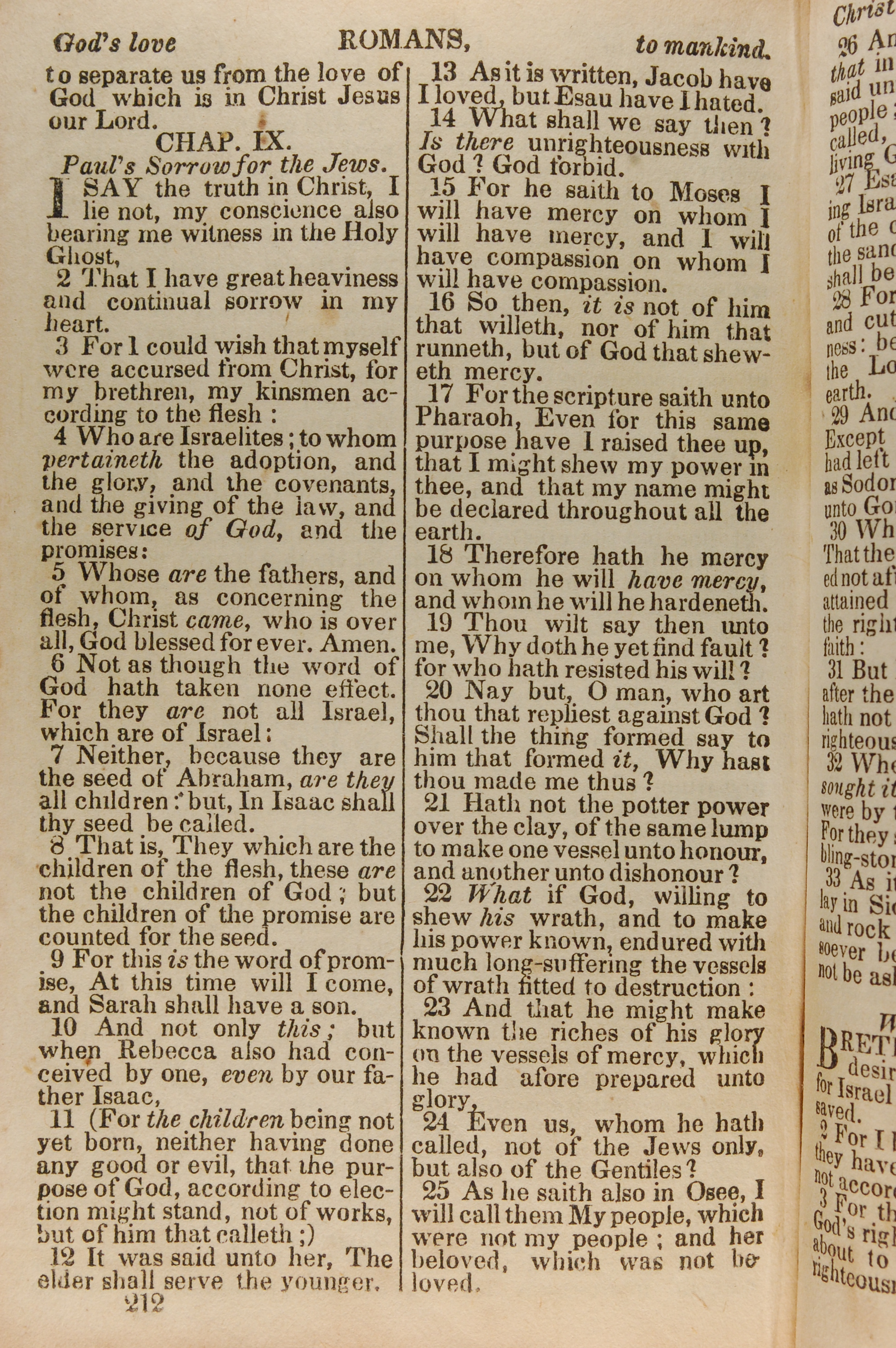 1843年The New Testament 羅馬書 9 章 1 節到 9 章 25 節