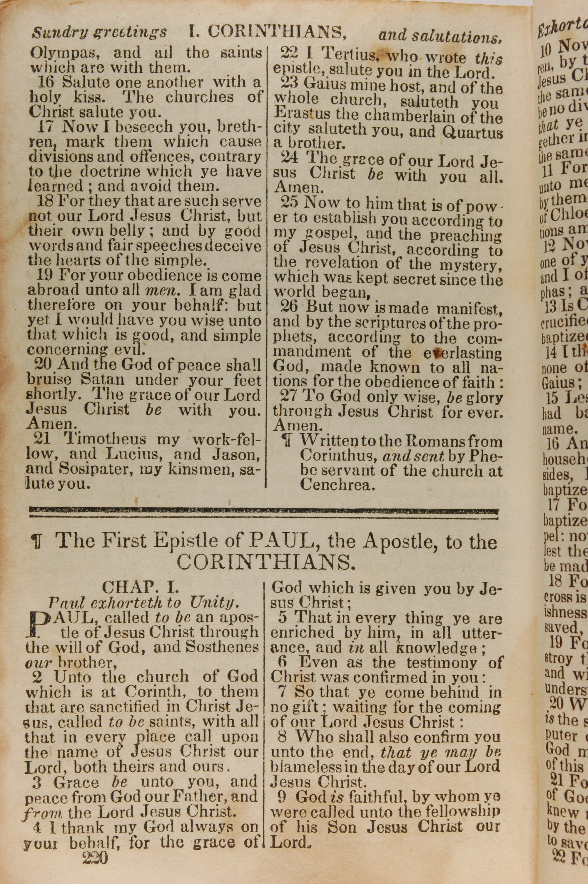 1843年The New Testament 羅馬書 16 章 16 節到 16 章 27 節