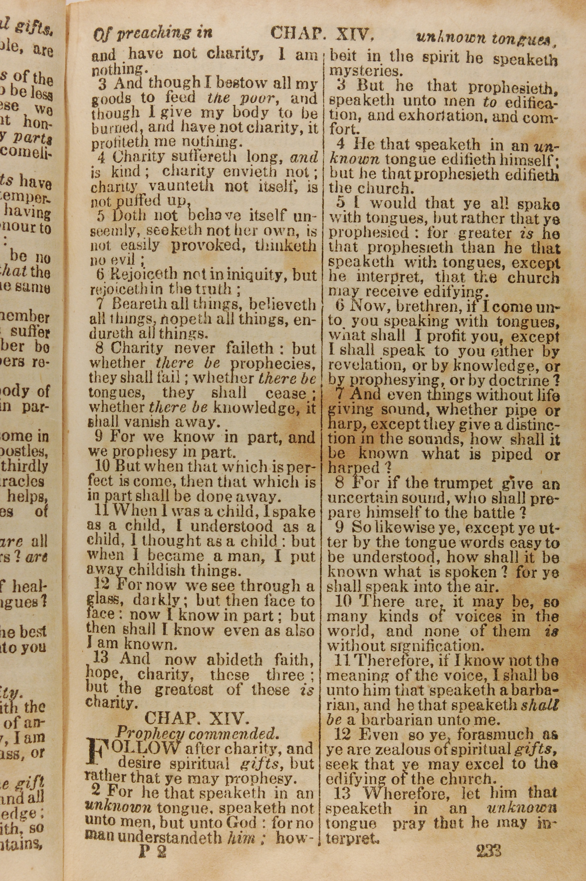 1843年The New Testament 哥林多前書 13 章 3 節到 14 章 13 節