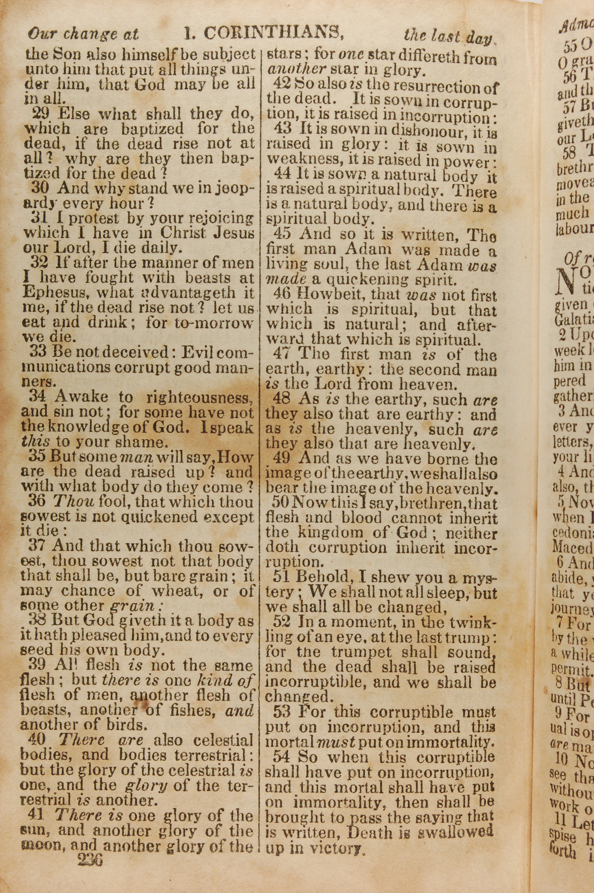 1843年The New Testament 哥林多前書 15 章 29 節到 15 章 54 節