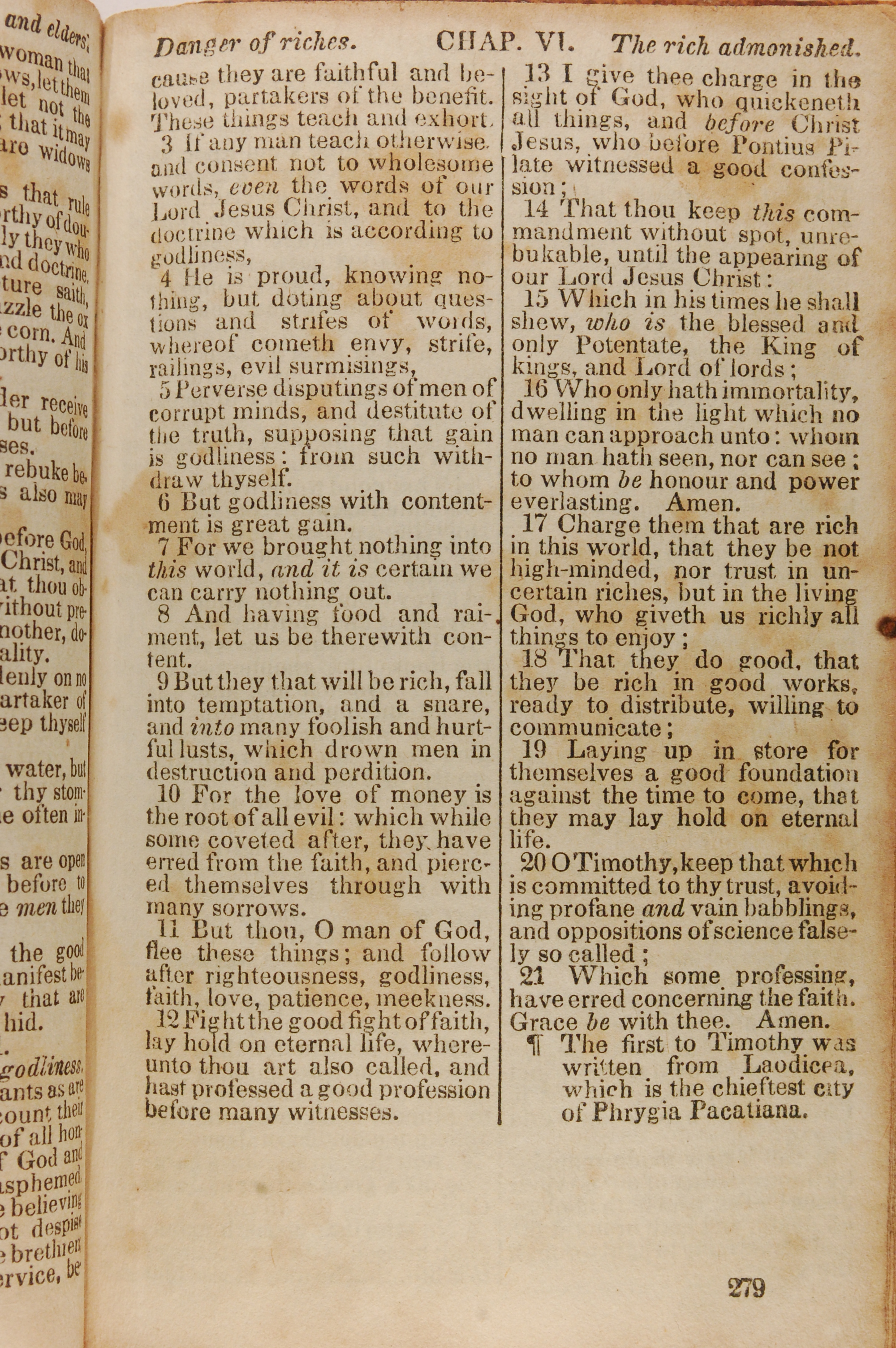 1843年The New Testament 提摩太前書 6 章 3 節到 6 章 21 節