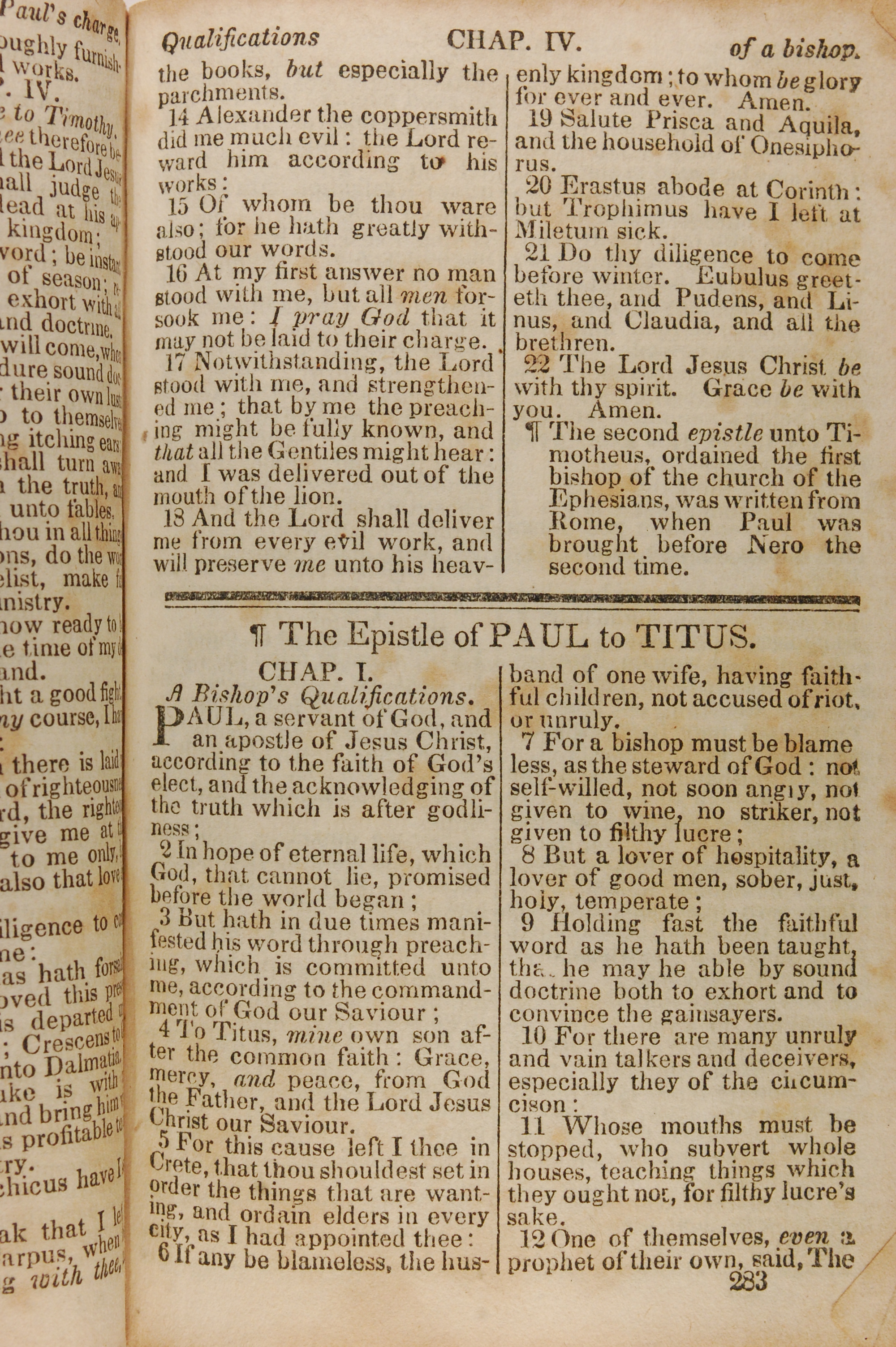 1843年The New Testament 提摩太後書 4 章 14 節到 4 章 22 節