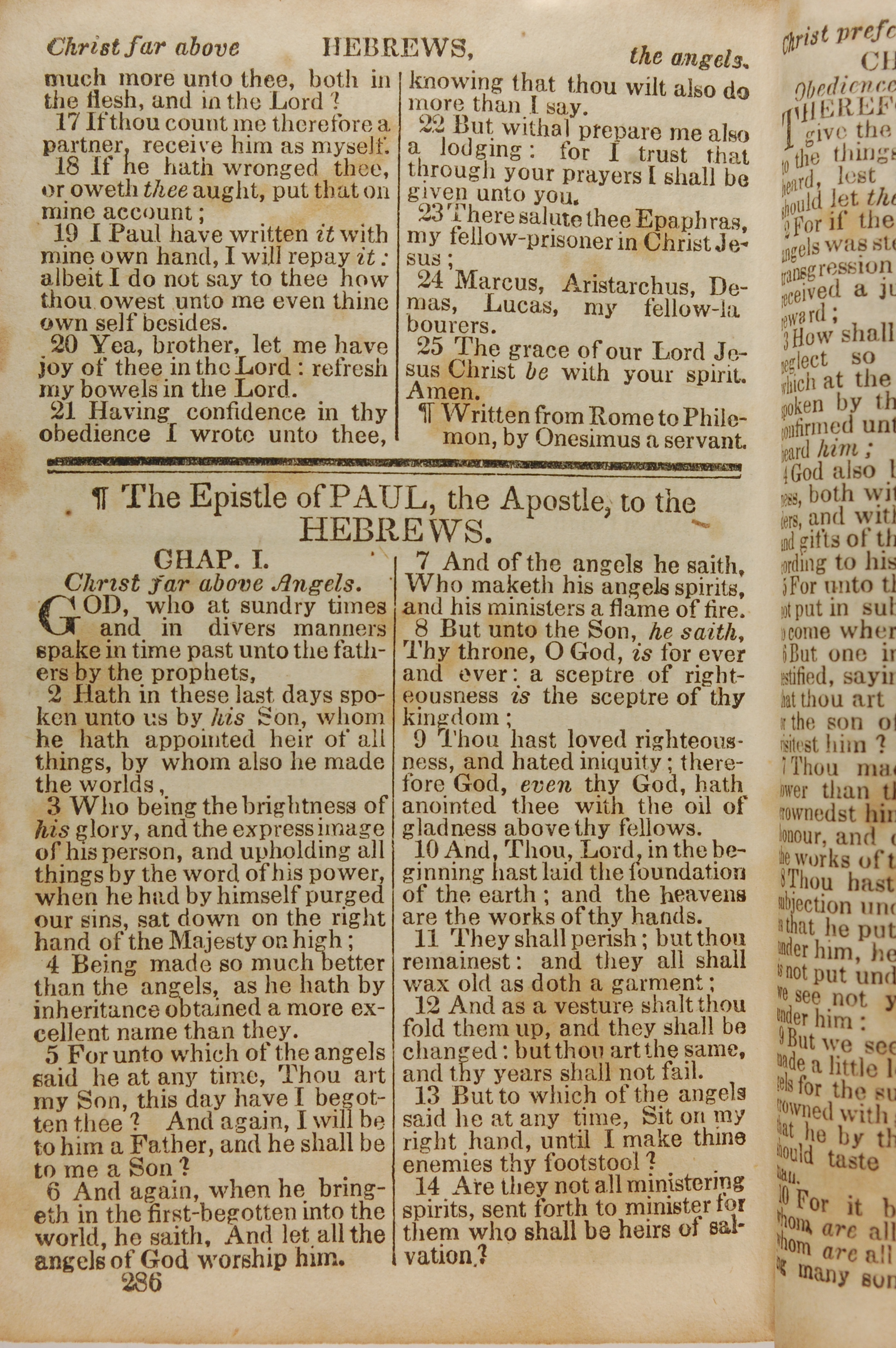 1843年The New Testament 腓利門書 1 章 17 節到 1 章 25 節
