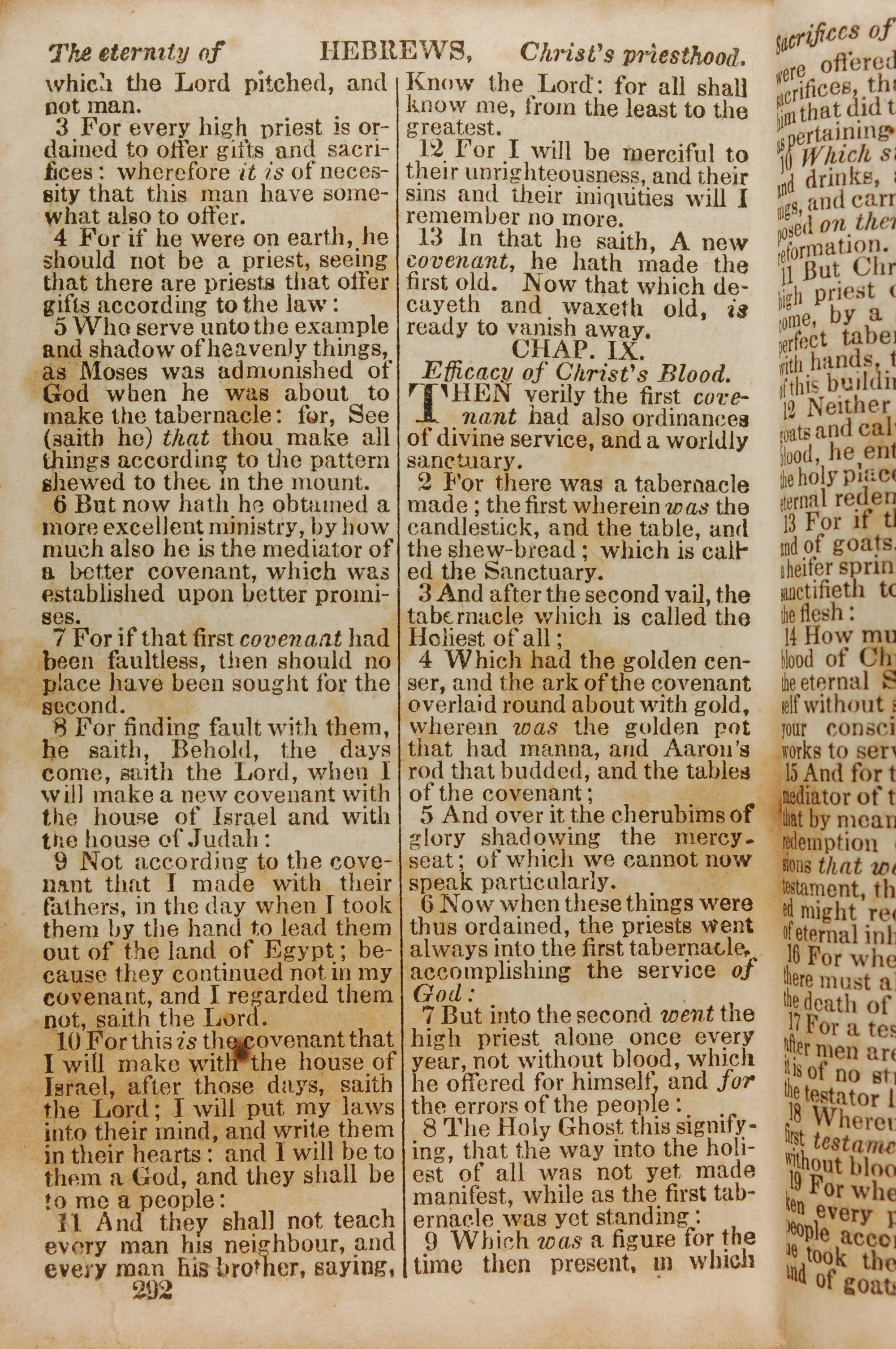 1843年The New Testament 希伯來書 8 章 3 節到 9 章 9 節