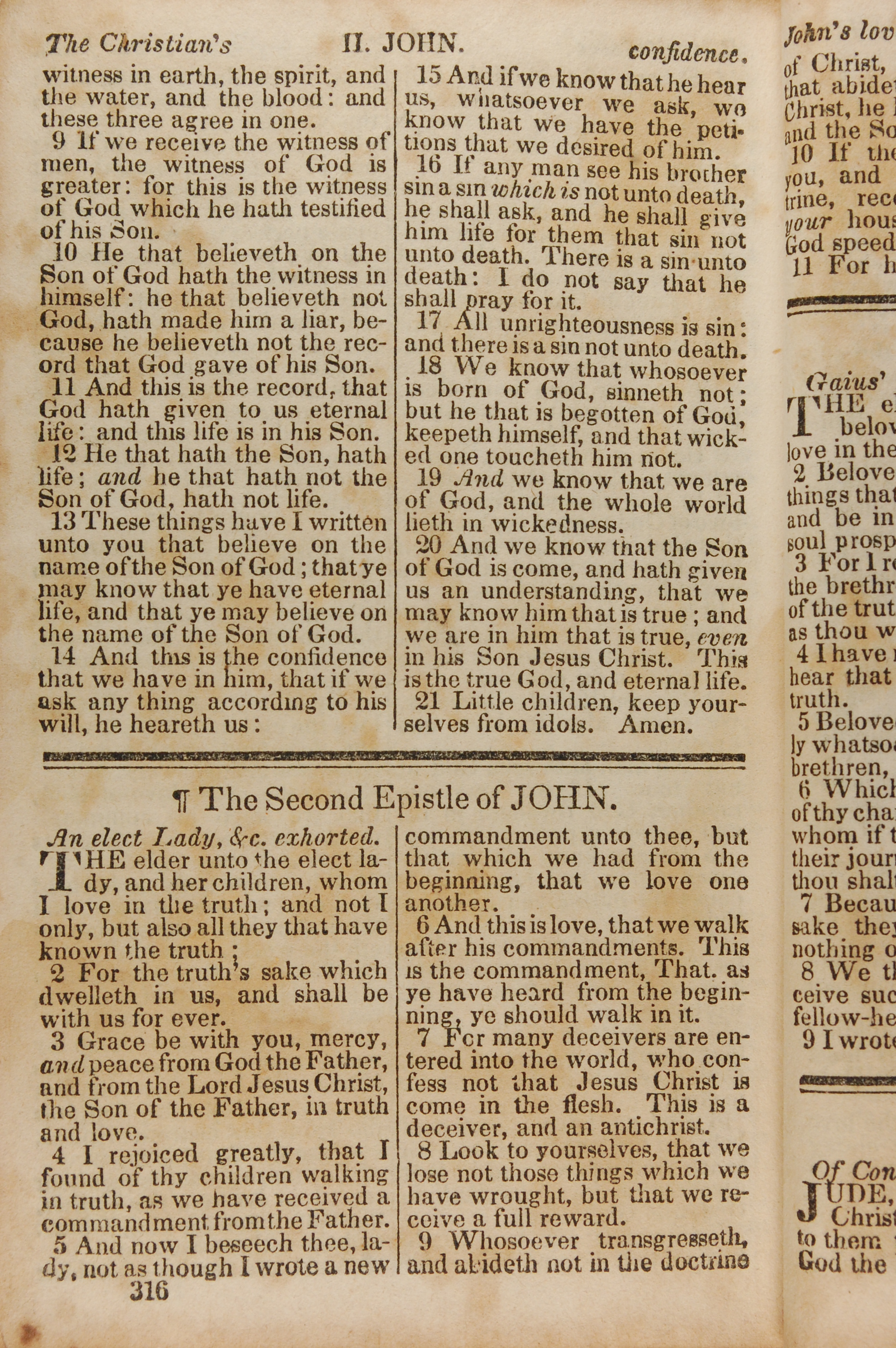 1843年The New Testament 約翰二書 1 章 1 節到 1 章 9 節