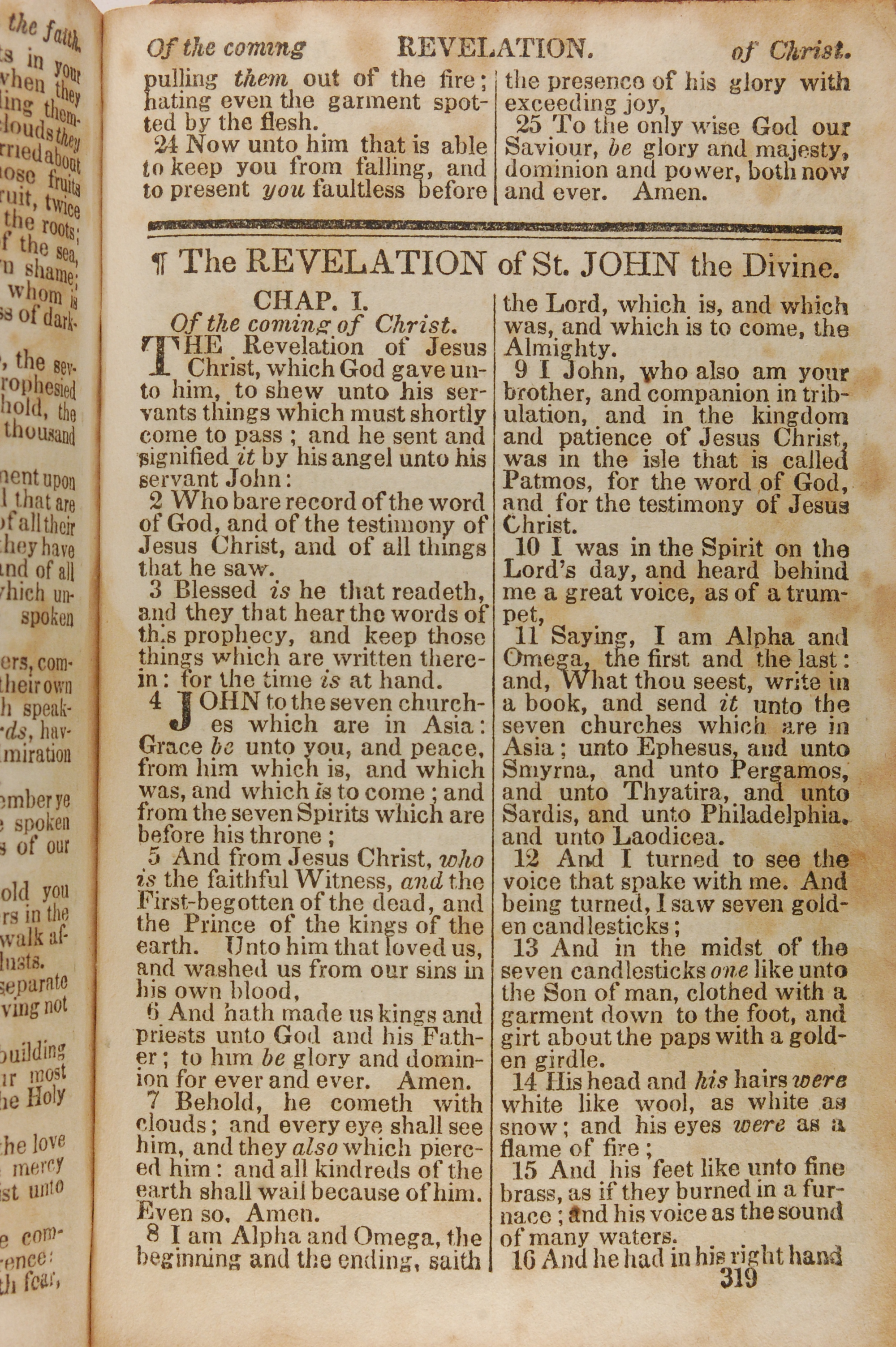1843年The New Testament 啟示錄 1 章 1 節到 1 章 16 節