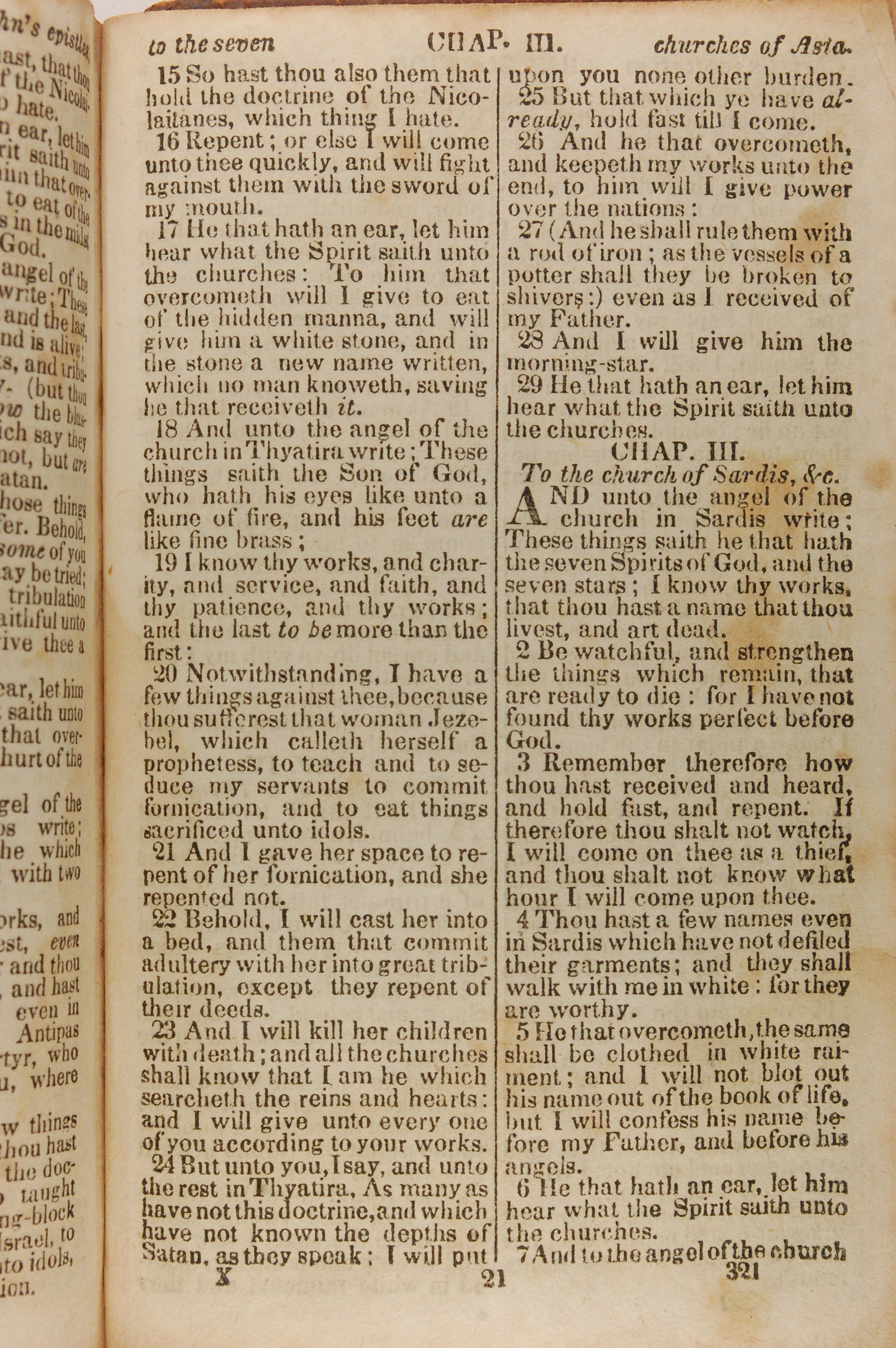 1843年The New Testament 啟示錄 2 章 15 節到 3 章 7 節