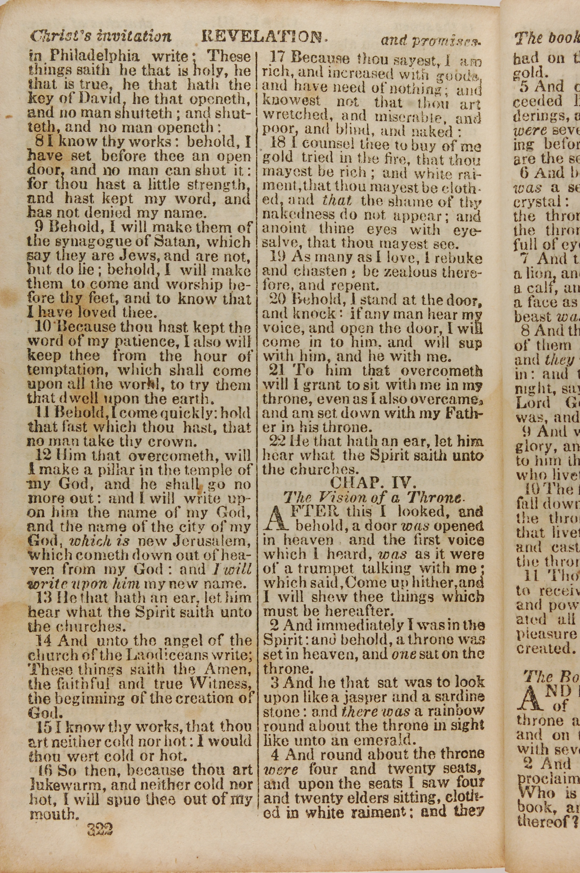 1843年The New Testament 啟示錄 3 章 8 節到 4 章 4 節