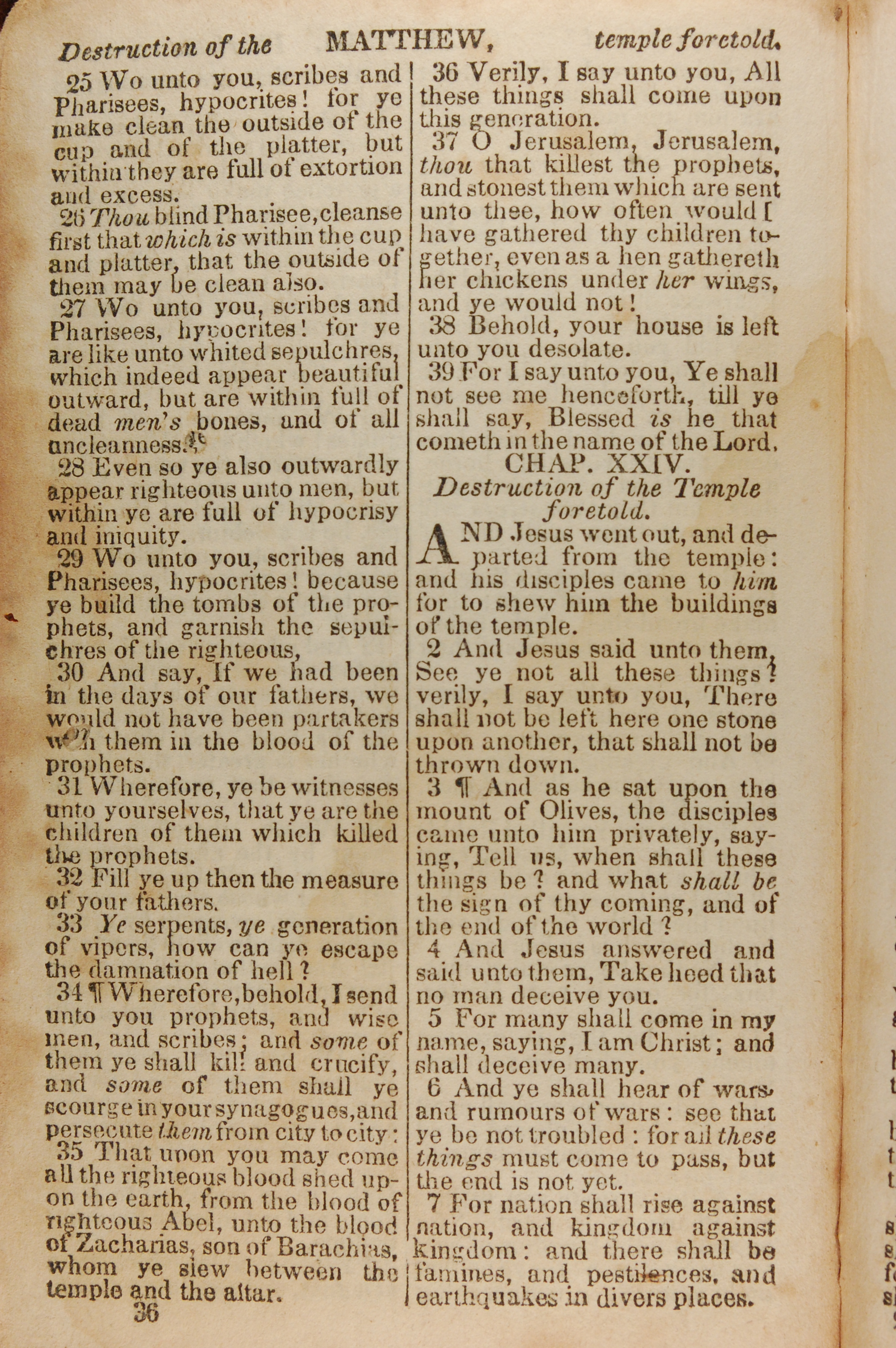 1843年The New Testament 馬太福音 23 章 25 節到 24 章 7 節