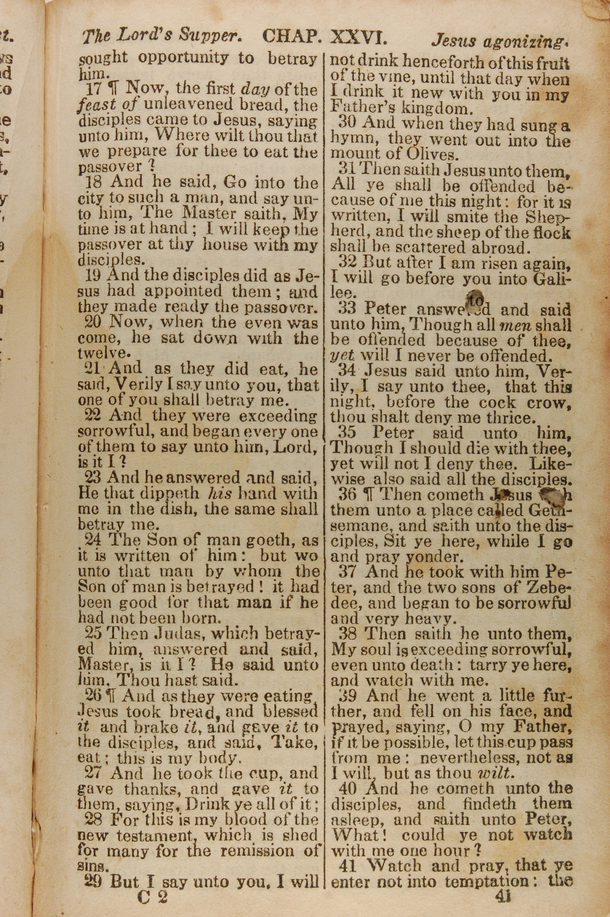 1843年The New Testament 馬太福音 26 章 17 節到 26 章 41 節