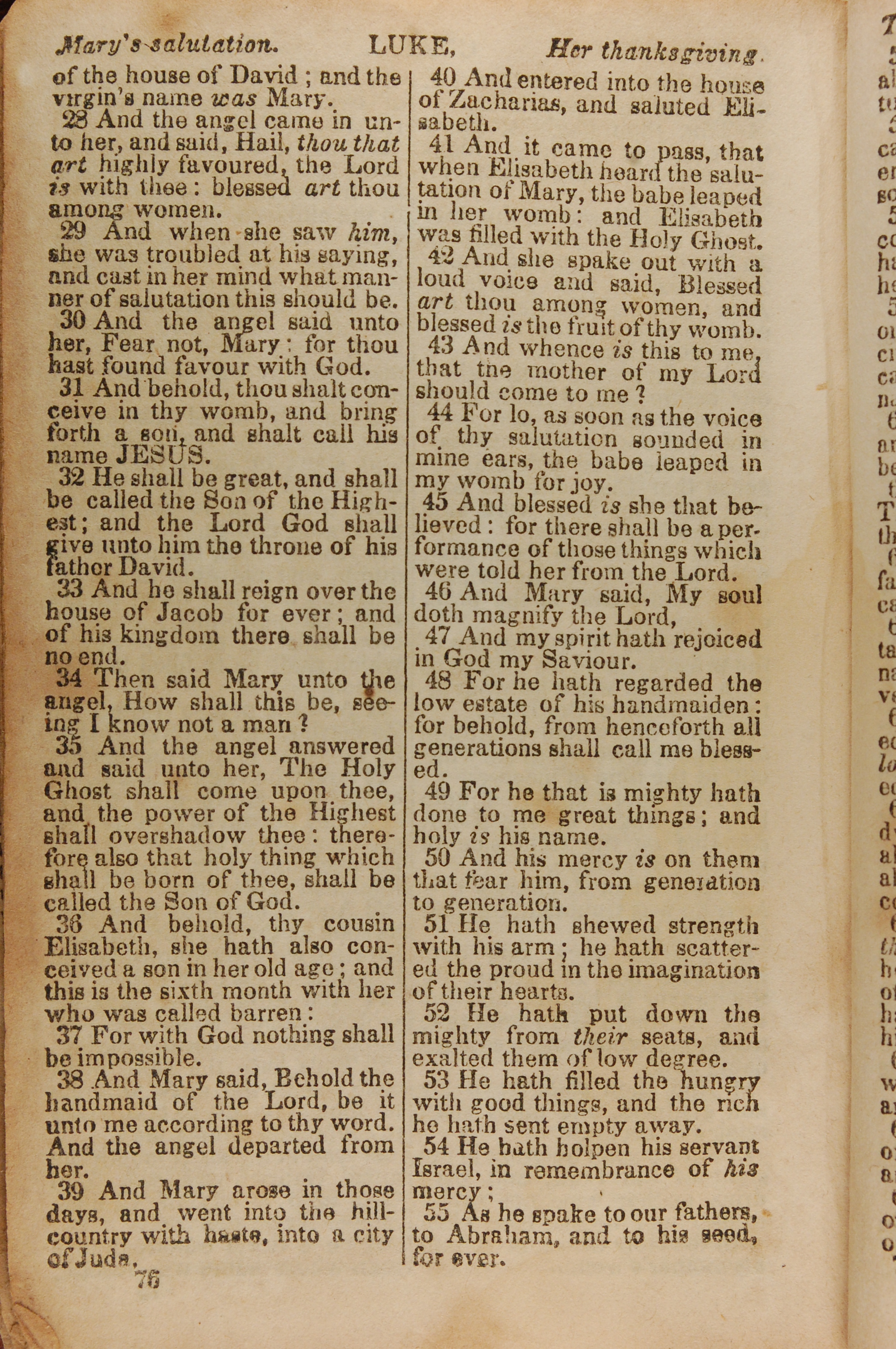 1843年The New Testament 路加福音 1 章 28 節到 1 章 55 節