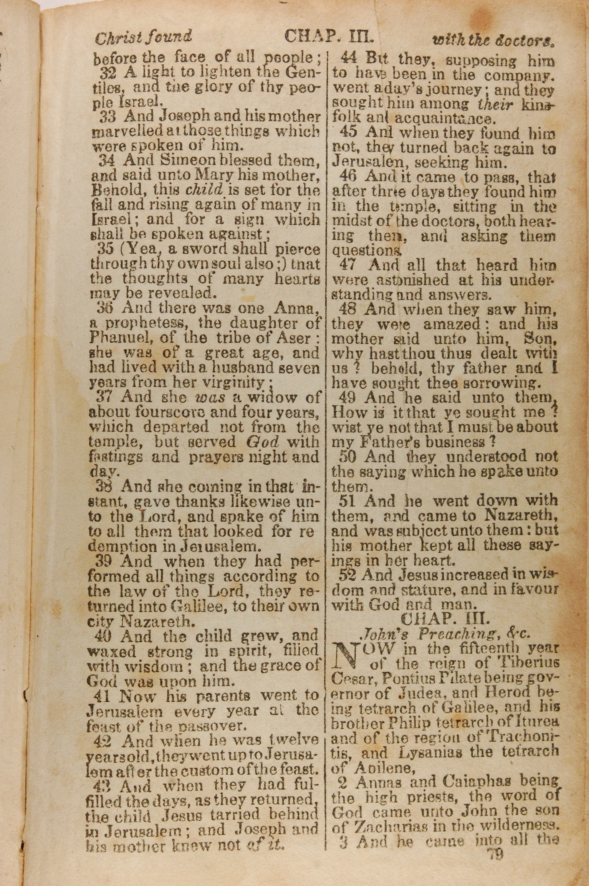 1843年The New Testament 路加福音 2 章 32 節到 3 章 3 節