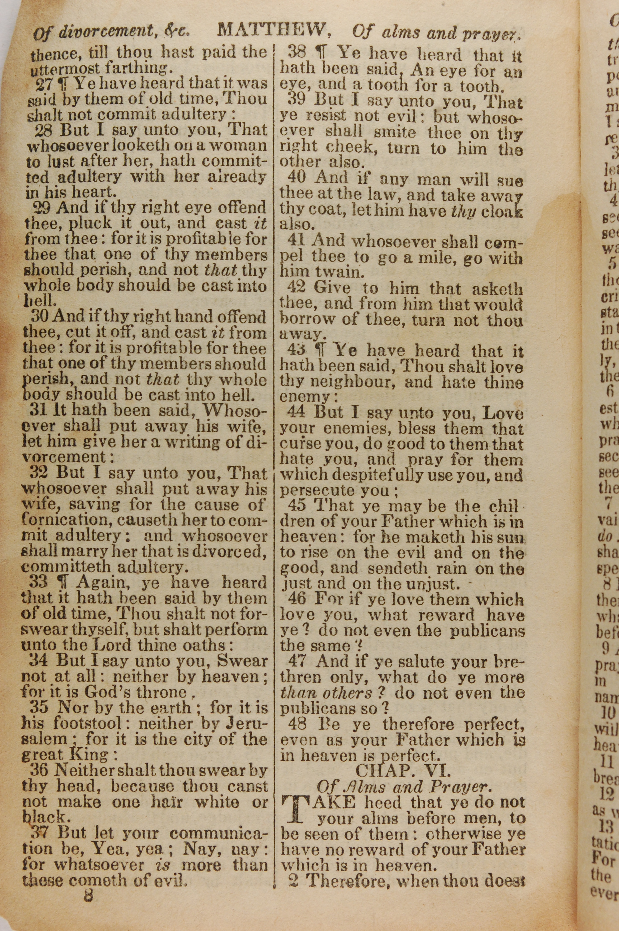 1843年The New Testament 馬太福音 5 章 27 節到 6 章 2 節