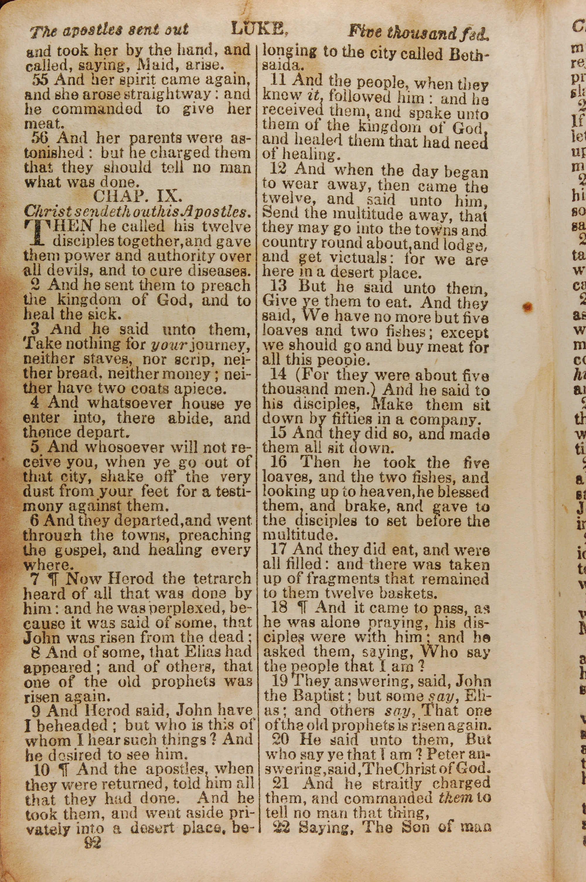 1843年The New Testament 路加福音 8 章 55 節到 9 章 22 節