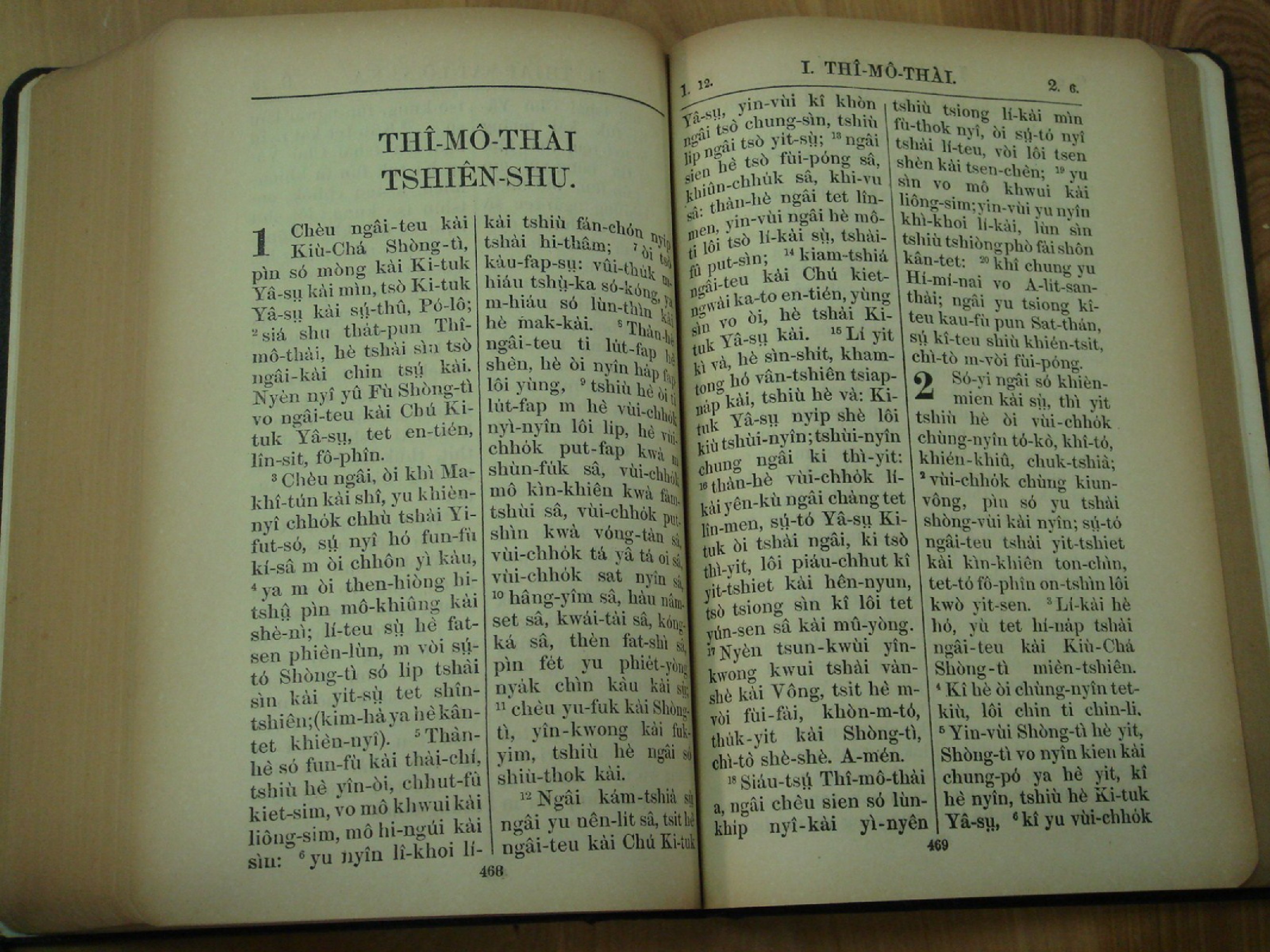 1924年新約全書 提摩太前書 1 章 1 節到 2 章 6 節