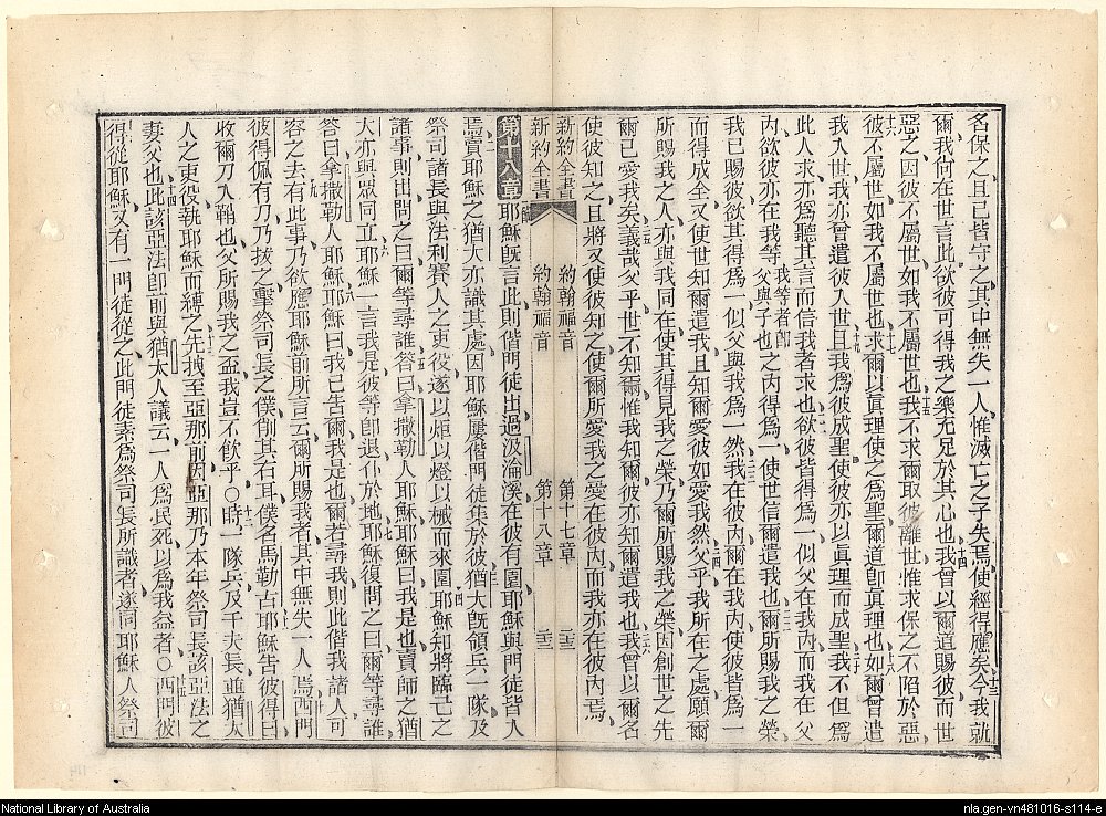 1885年新約全書 約翰福音 17 章 13 節到 18 章 15 節