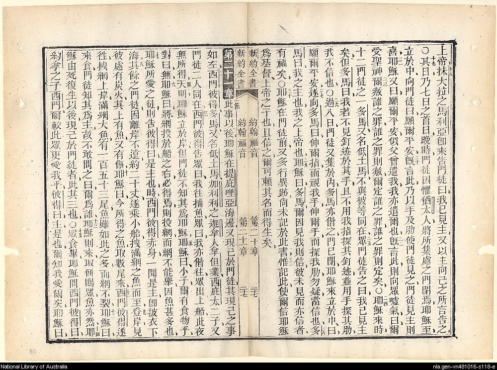 1885年新約全書 約翰福音 20 章 18 節到 21 章 15 節