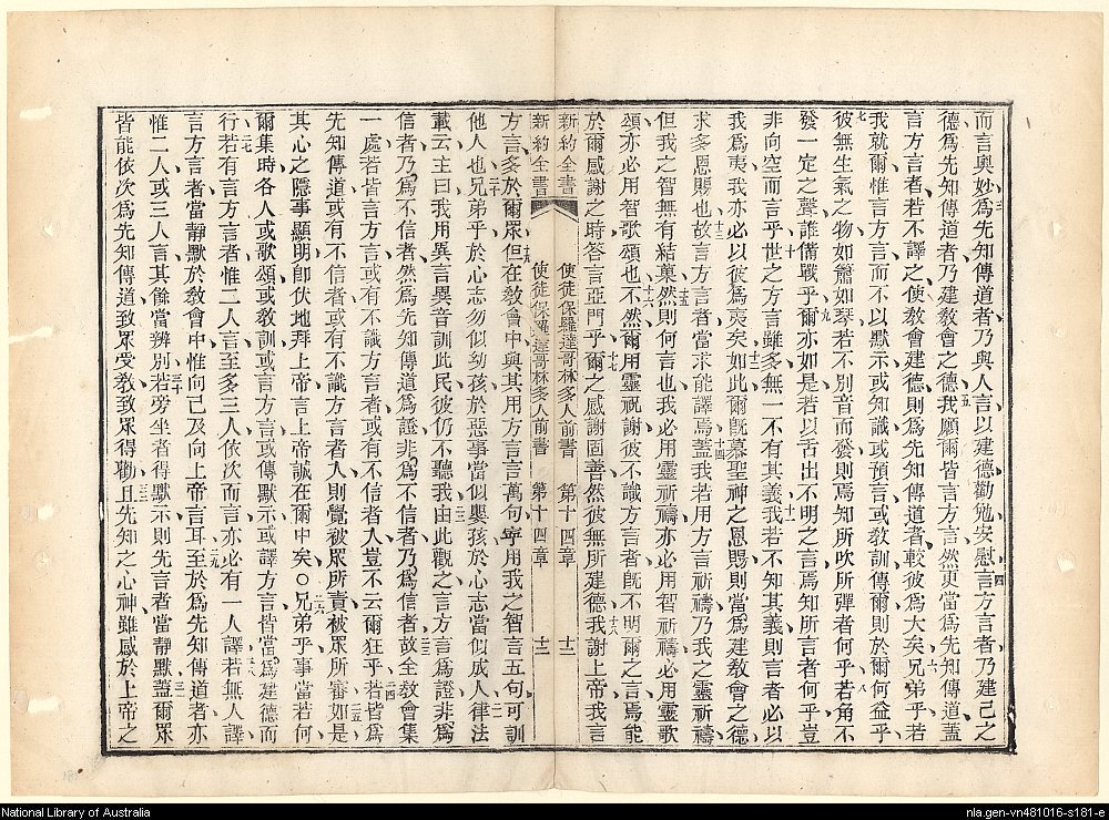 1885年新約全書 哥林多前書 14 章 3 節到 14 章 32 節
