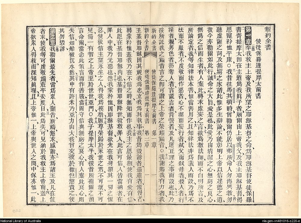 1885年新約全書 提摩太前書 1 章 1 節到 2 章 5 節