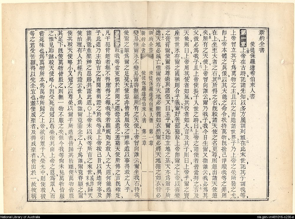 1885年新約全書 希伯來書 1 章 1 節到 2 章 11 節