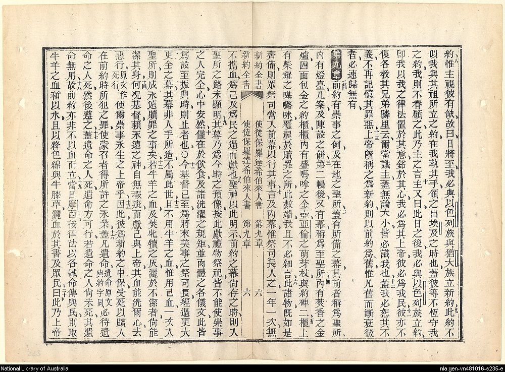 1885年新約全書 希伯來書 8 章 8 節到 9 章 20 節