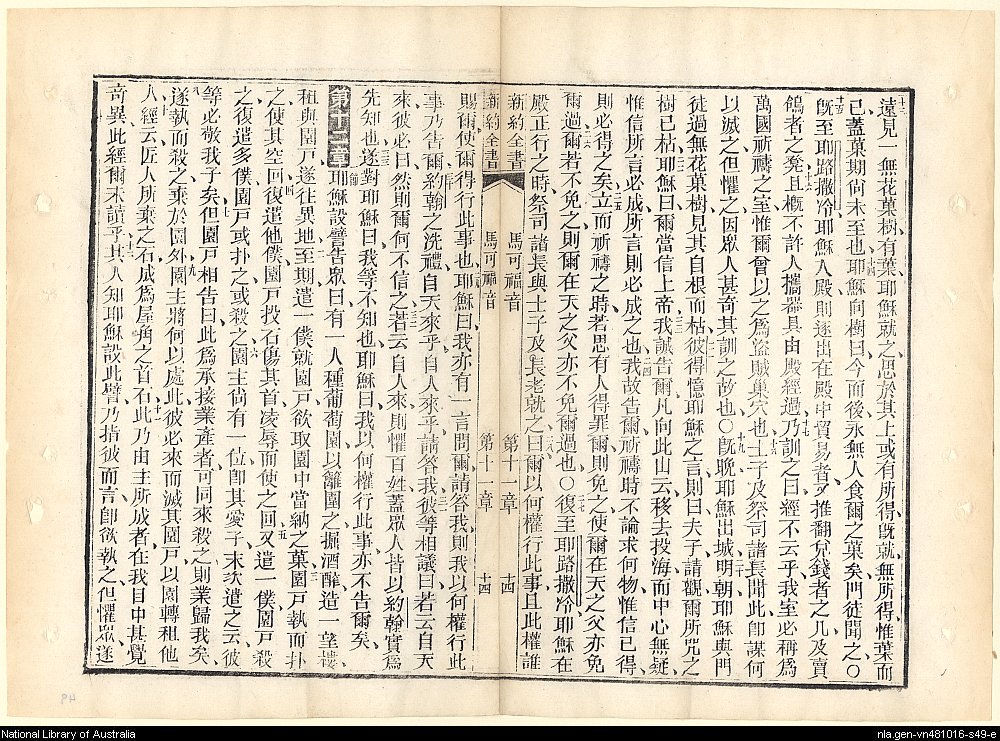 1885年新約全書 馬可福音 11 章 13 節到 12 章 12 節