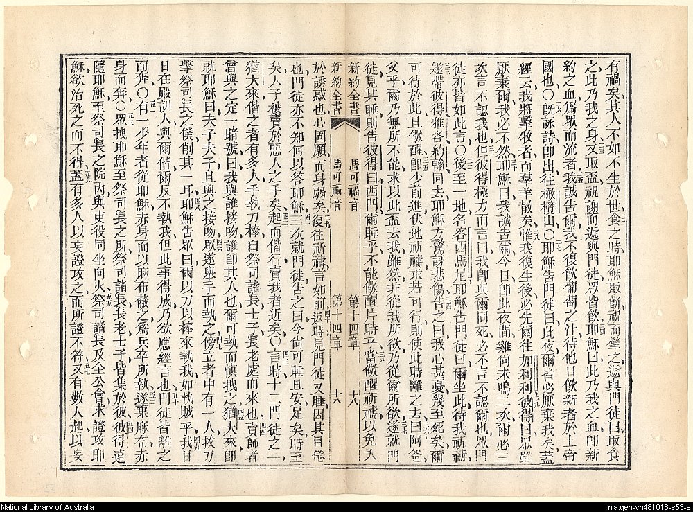 1885年新約全書 馬可福音 14 章 22 節到 14 章 57 節