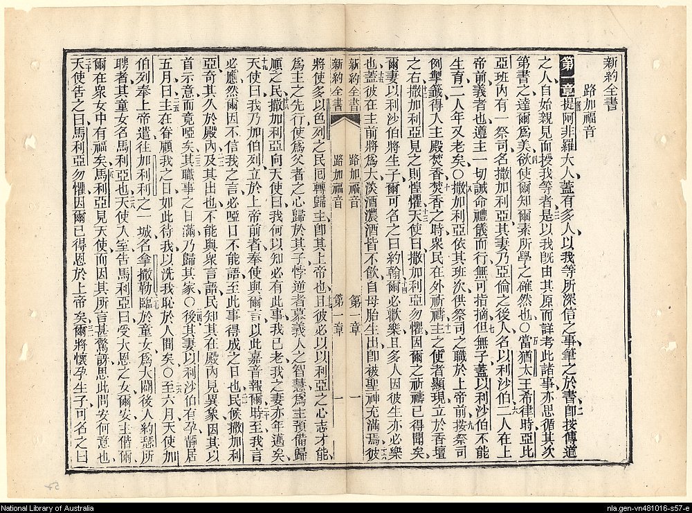 1885年新約全書 路加福音 1 章 1 節到 1 章 31 節
