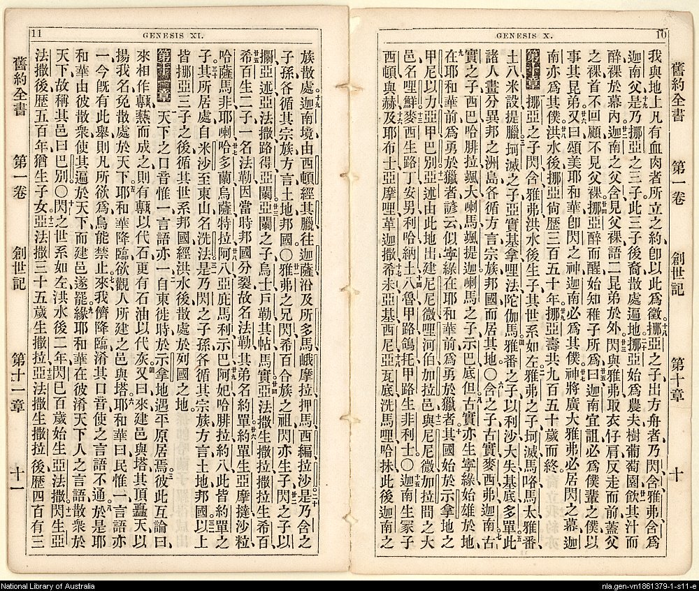 1865年舊約創世記至士師記 創世記 9 章 18 節到 11 章 13 節