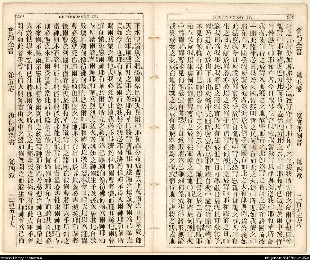 1865年舊約創世記至士師記 申命記 4 章 3 節到 4 章 34 節