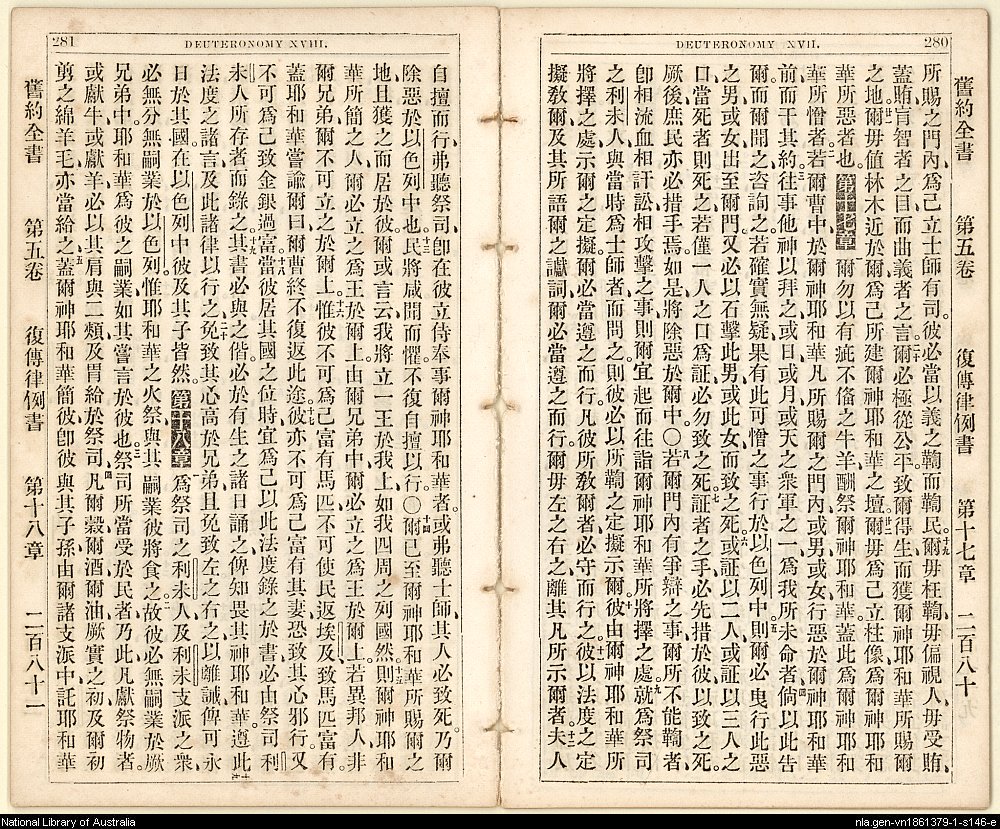 1865年舊約創世記至士師記 申命記 16 章 19 節到 18 章 5 節