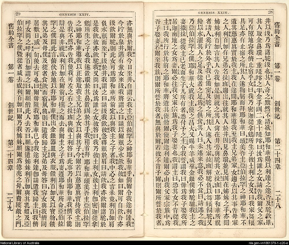 1865年舊約創世記至士師記 創世記 24 章 21 節到 24 章 60 節