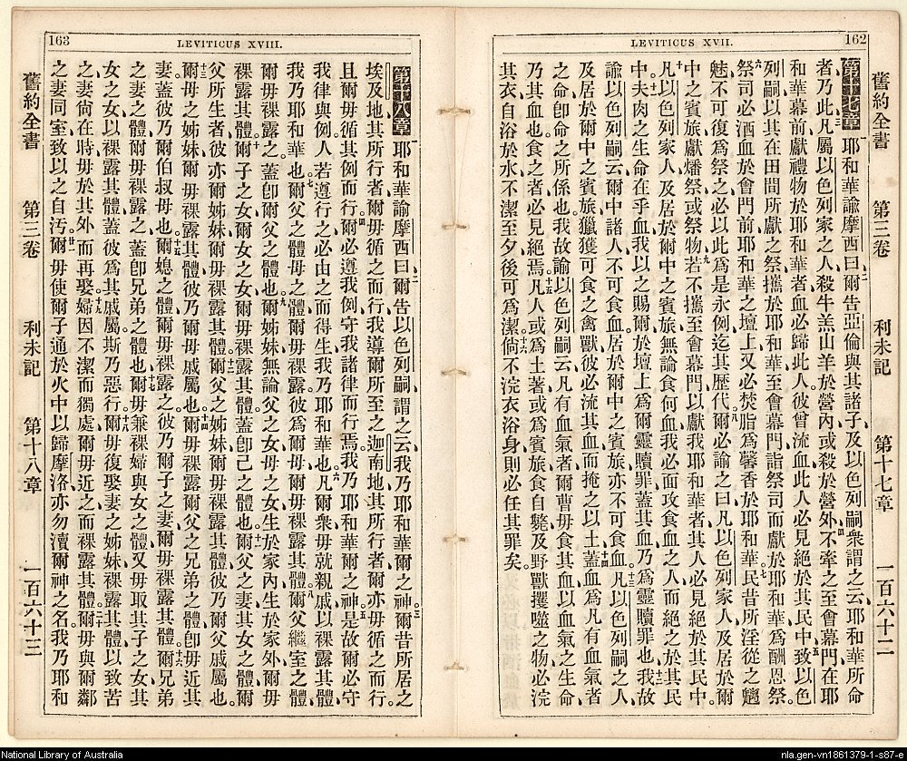 1865年舊約創世記至士師記 利未記 17 章 1 節到 18 章 21 節