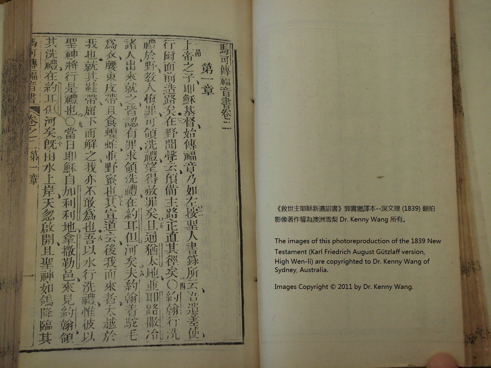1839年新約全書(救世主耶穌新遺詔書) 馬可福音 1 章 1 節到 1 章 10 節