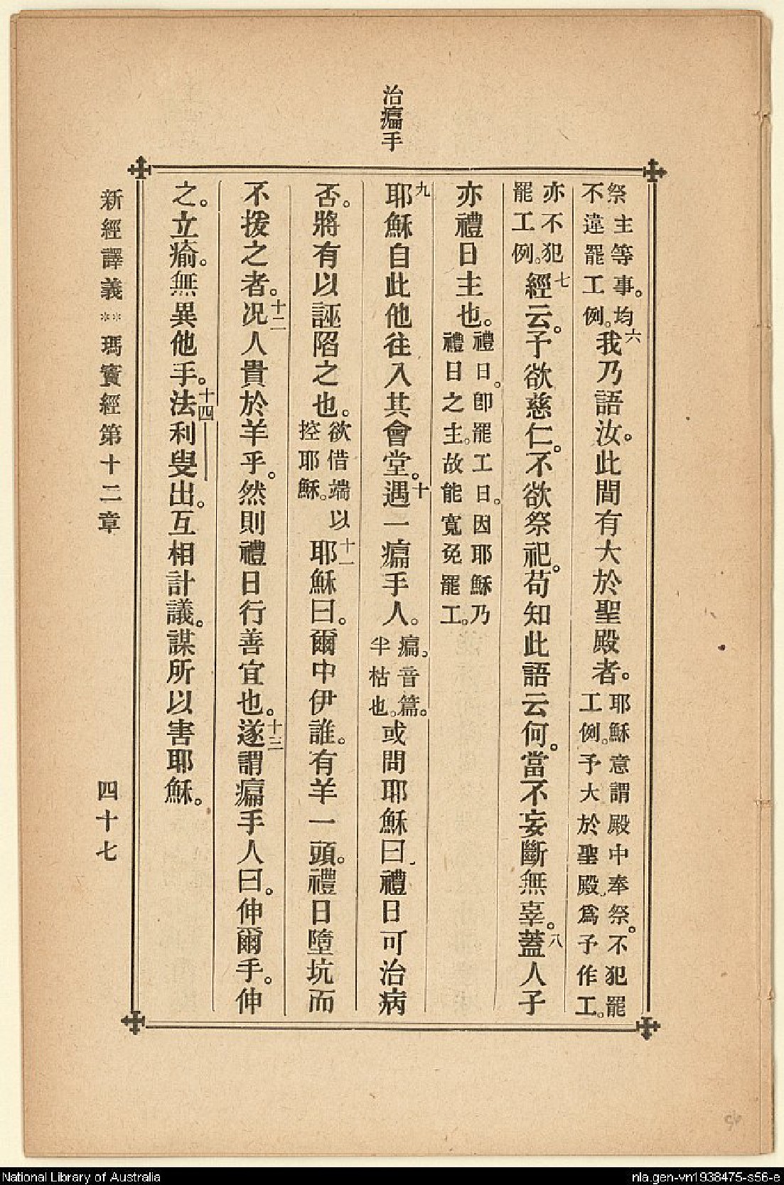 1907年新約四福音(新經譯義) 馬太福音 12 章 5 節到 12 章 14 節
