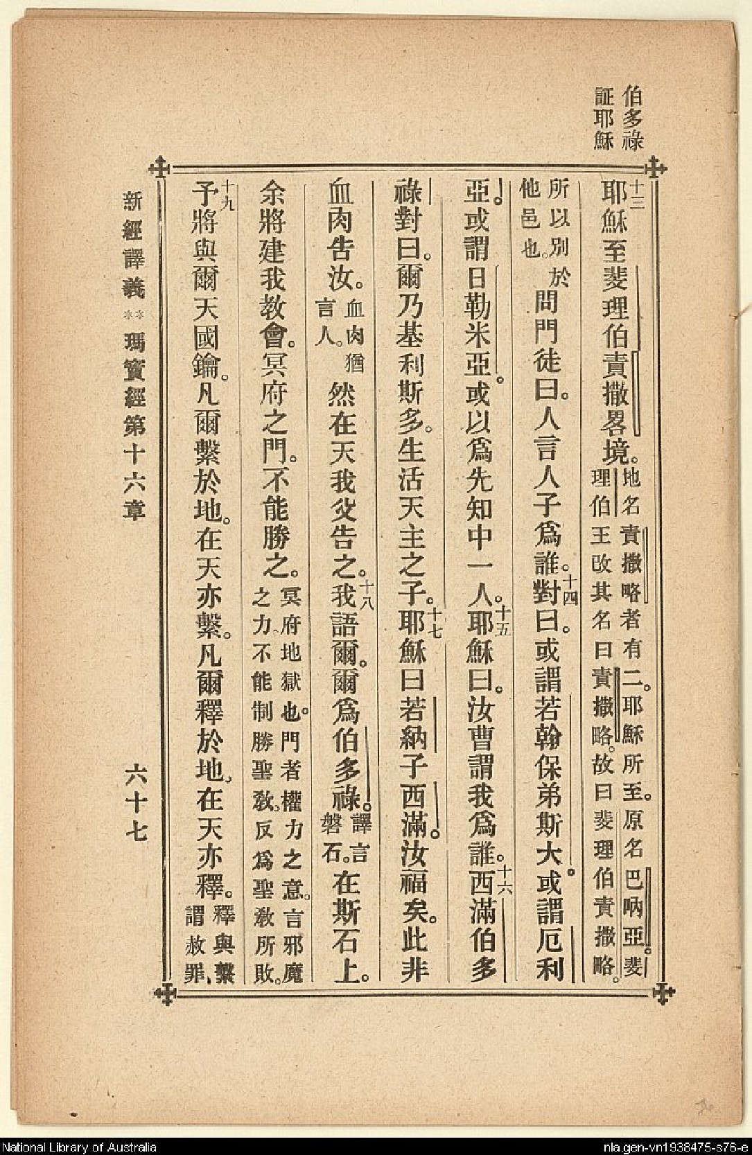 1907年新約四福音(新經譯義) 馬太福音 16 章 13 節到 16 章 19 節