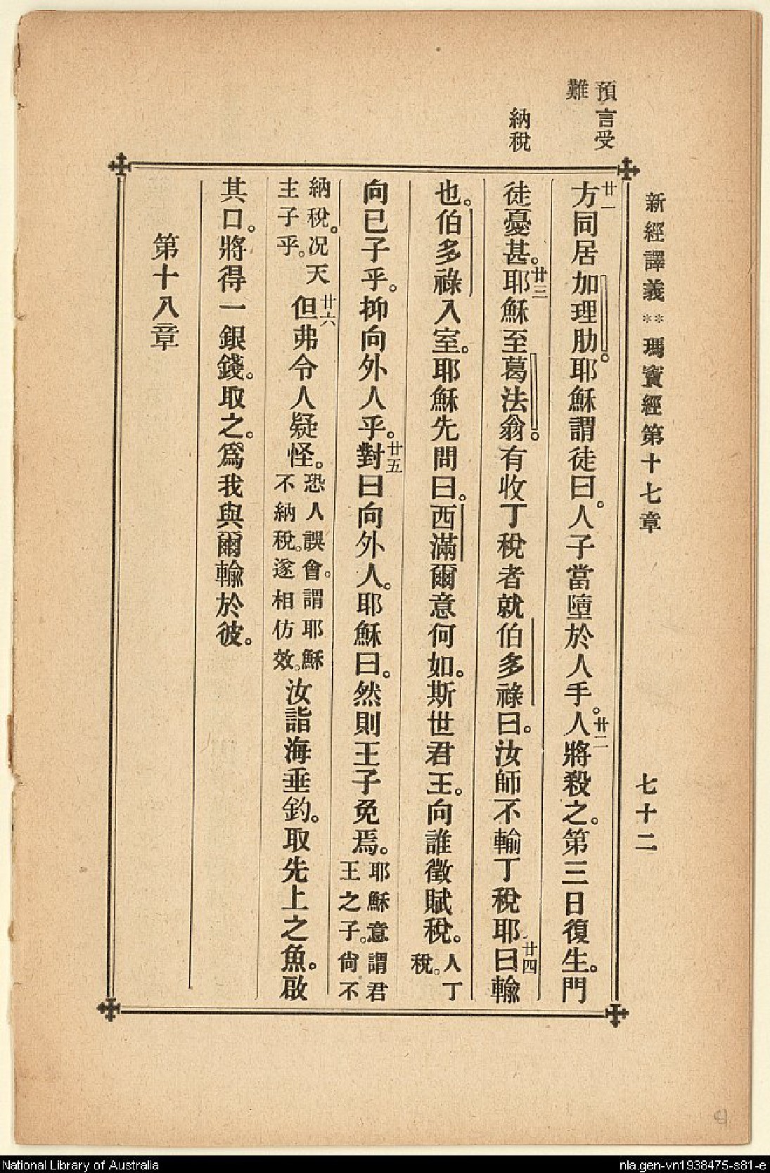 1907年新約四福音(新經譯義) 馬太福音 17 章 21 節到 18 章 0 節