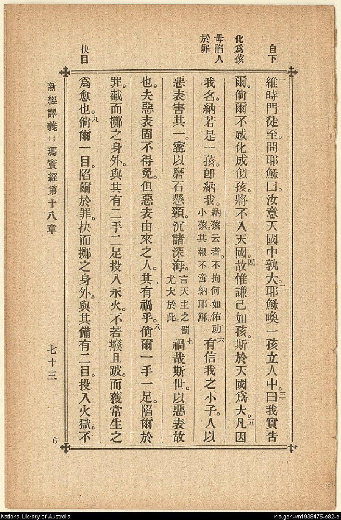 1907年新約四福音(新經譯義) 馬太福音 18 章 1 節到 18 章 9 節