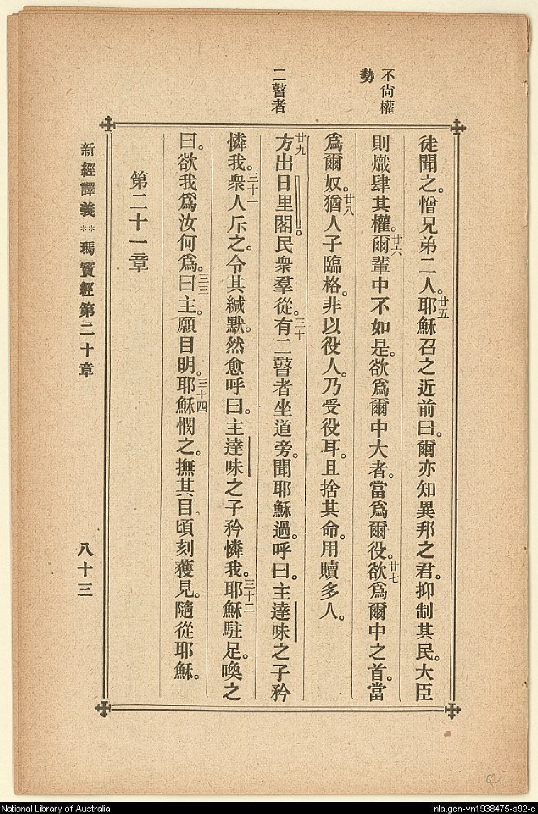 1907年新約四福音(新經譯義) 馬太福音 20 章 25 節到 21 章 0 節