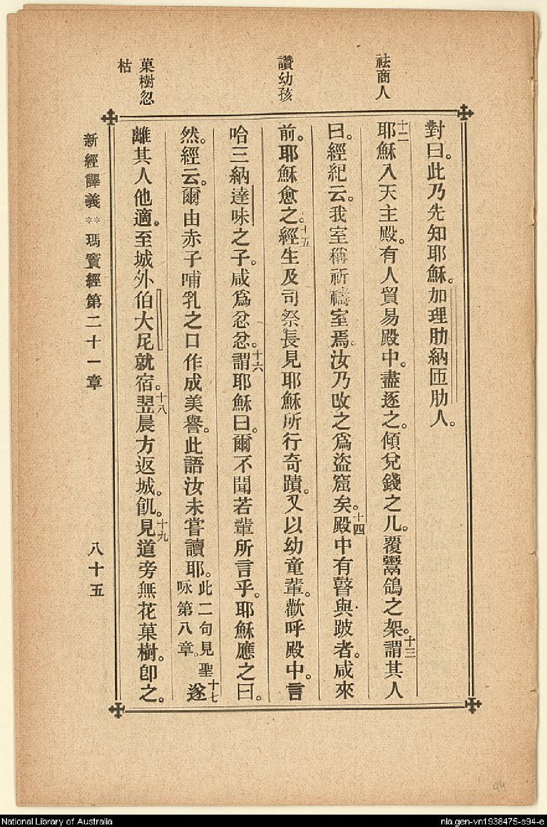 1907年新約四福音(新經譯義) 馬太福音 21 章 11 節到 21 章 19 節