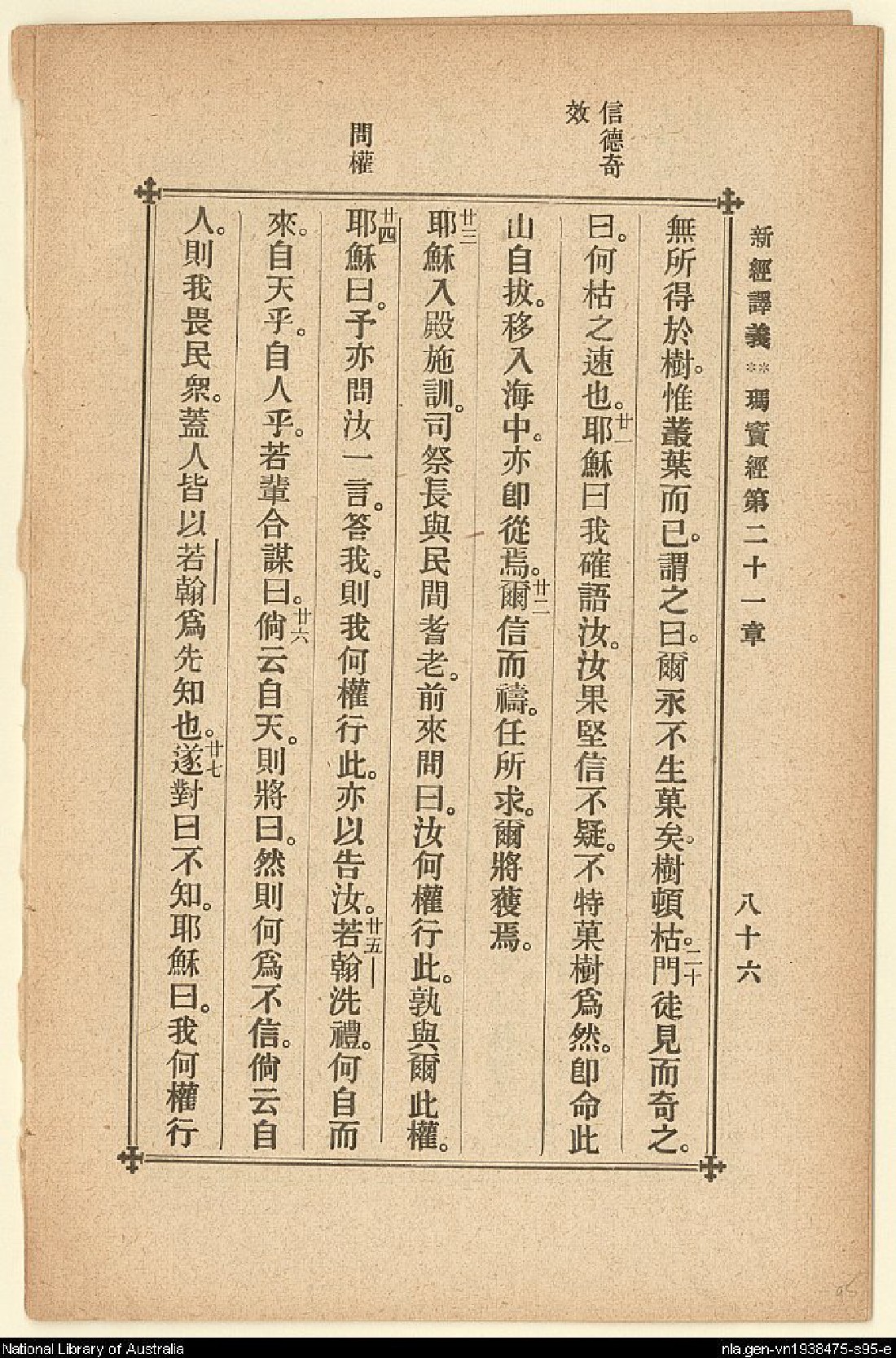 1907年新約四福音(新經譯義) 馬太福音 21 章 19 節到 21 章 27 節