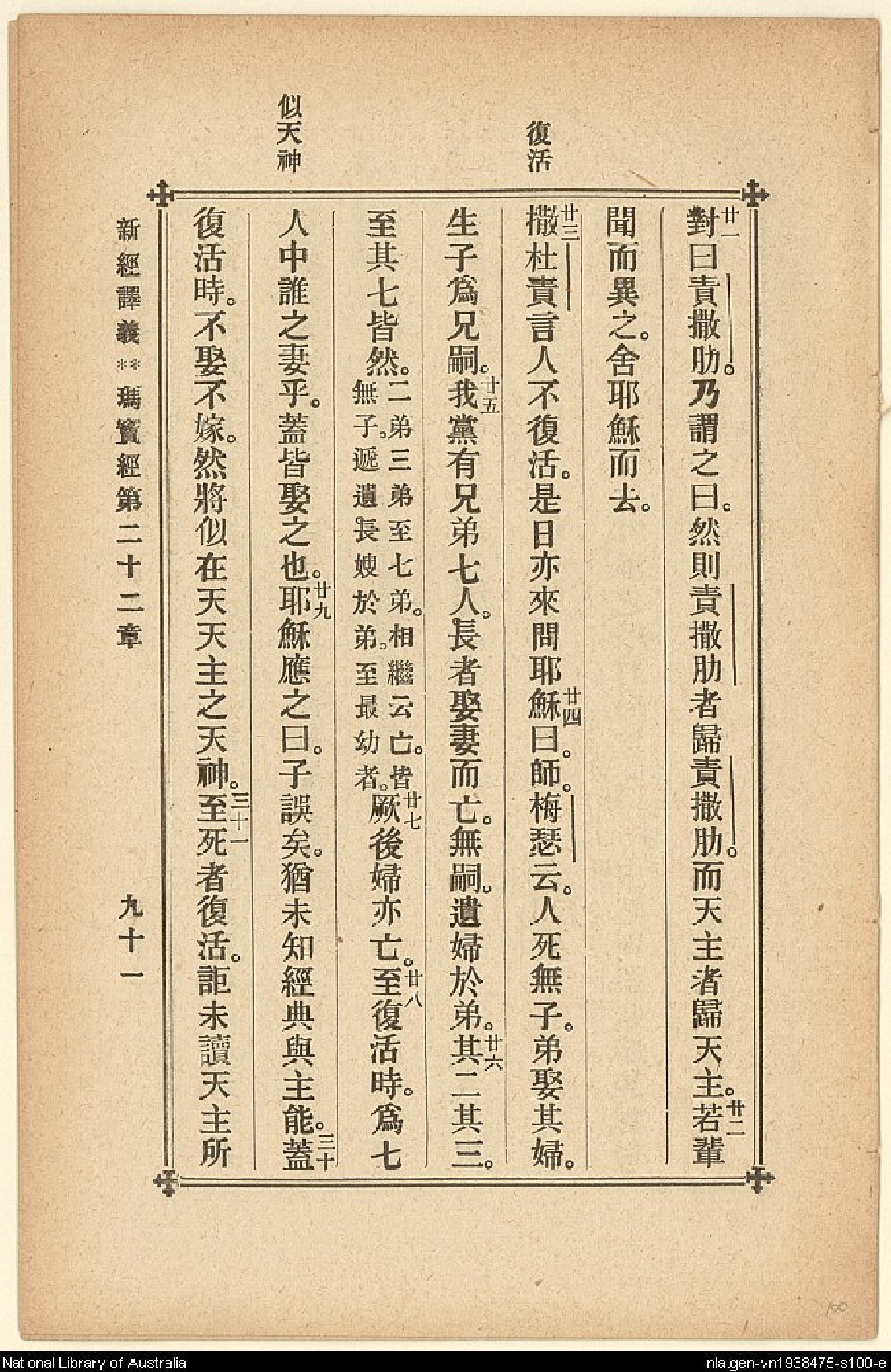 1907年新約四福音(新經譯義) 馬太福音 22 章 21 節到 22 章 31 節