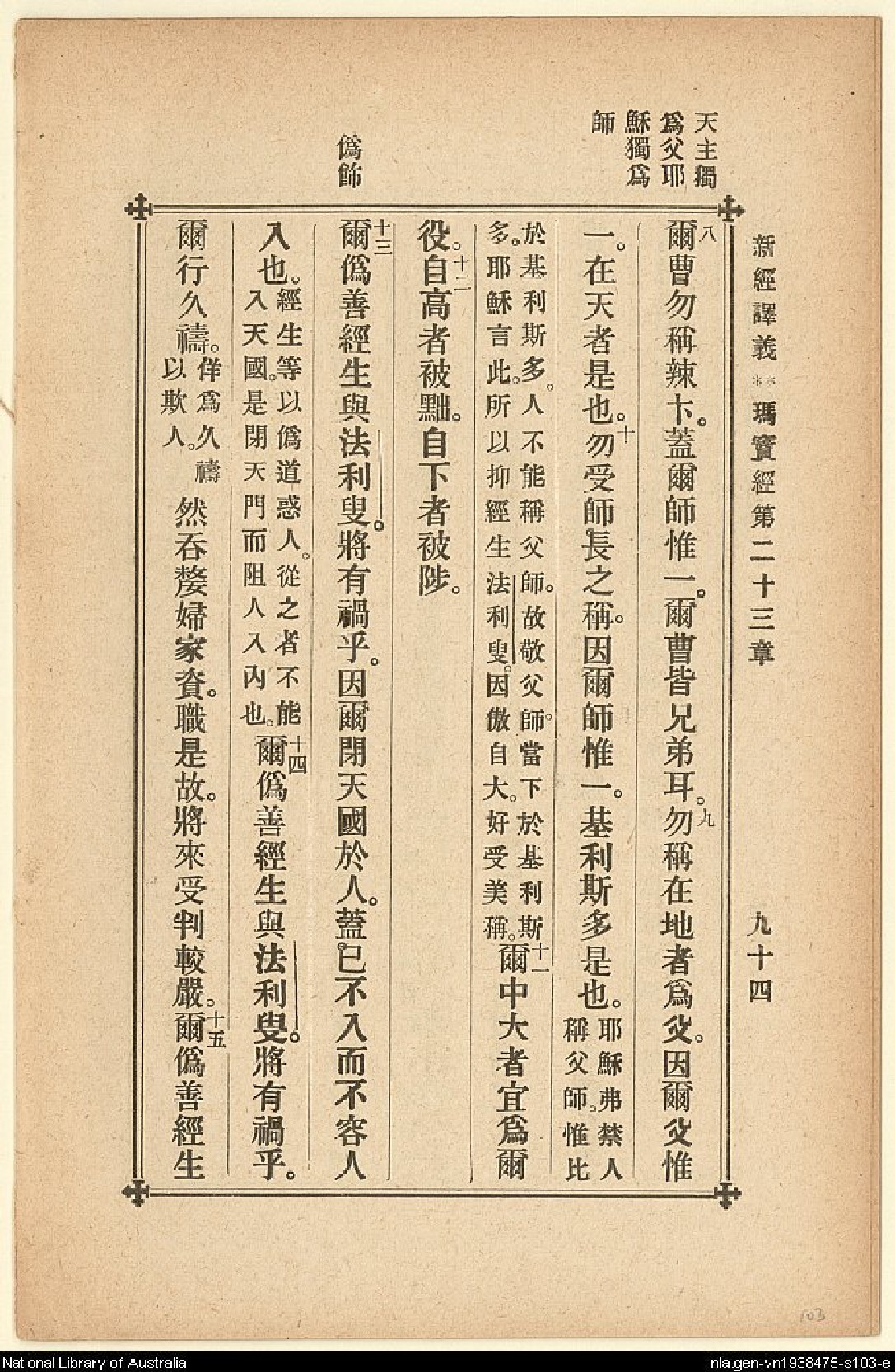 1907年新約四福音(新經譯義) 馬太福音 23 章 8 節到 23 章 15 節